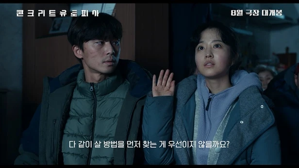 민성(박서준 분)은 흙수저 출신 공무원이다. 대학교 때 사귄 여자 친구와 결혼했다. 대출을 받아 겨우 작은 아파트 하나 마련했는데, 그 아파트가 바로 이 재난 속에 살아남은 유일한 곳이었다. 그는 천상 선한 마음을 가진 자였지만, 아내를 지키며 끝까지 살아남겠다는 의지가 충만해지자 헤어나오기 힘든 진흙탕에 빠지게 된다. 옳고 그름의 정의가 불분명해진 상황, 지금은 비상사태이기에 오로지 살아남는 것에 집중해야 한다고 되내이는 말에 지금 우리 모습을 돌아보게 된다. 과연 우리는 지금 정말로 부족한 것일까. 매일 수많은 변명속에서 마음이 끌리지 않는 일에 나서는 게 제대로 사는 걸까. 어쩌면 해답은 지금 이 안에 있는 것이 아니라 저 밖에 있지 않을까.