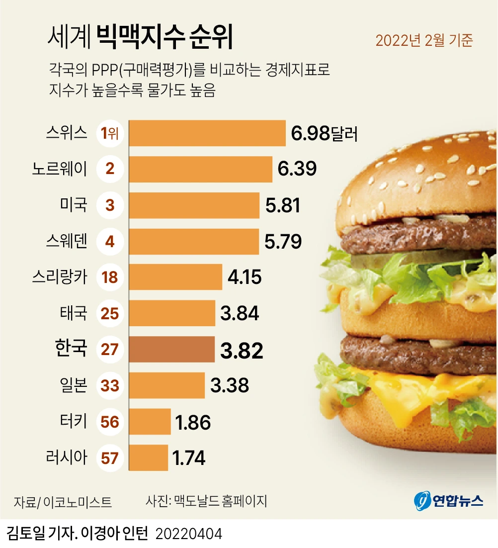 흔히 우리가 알고 있는 빅맥지수는 한 나라의 물가수준을 판단하는 데 쓰인다.