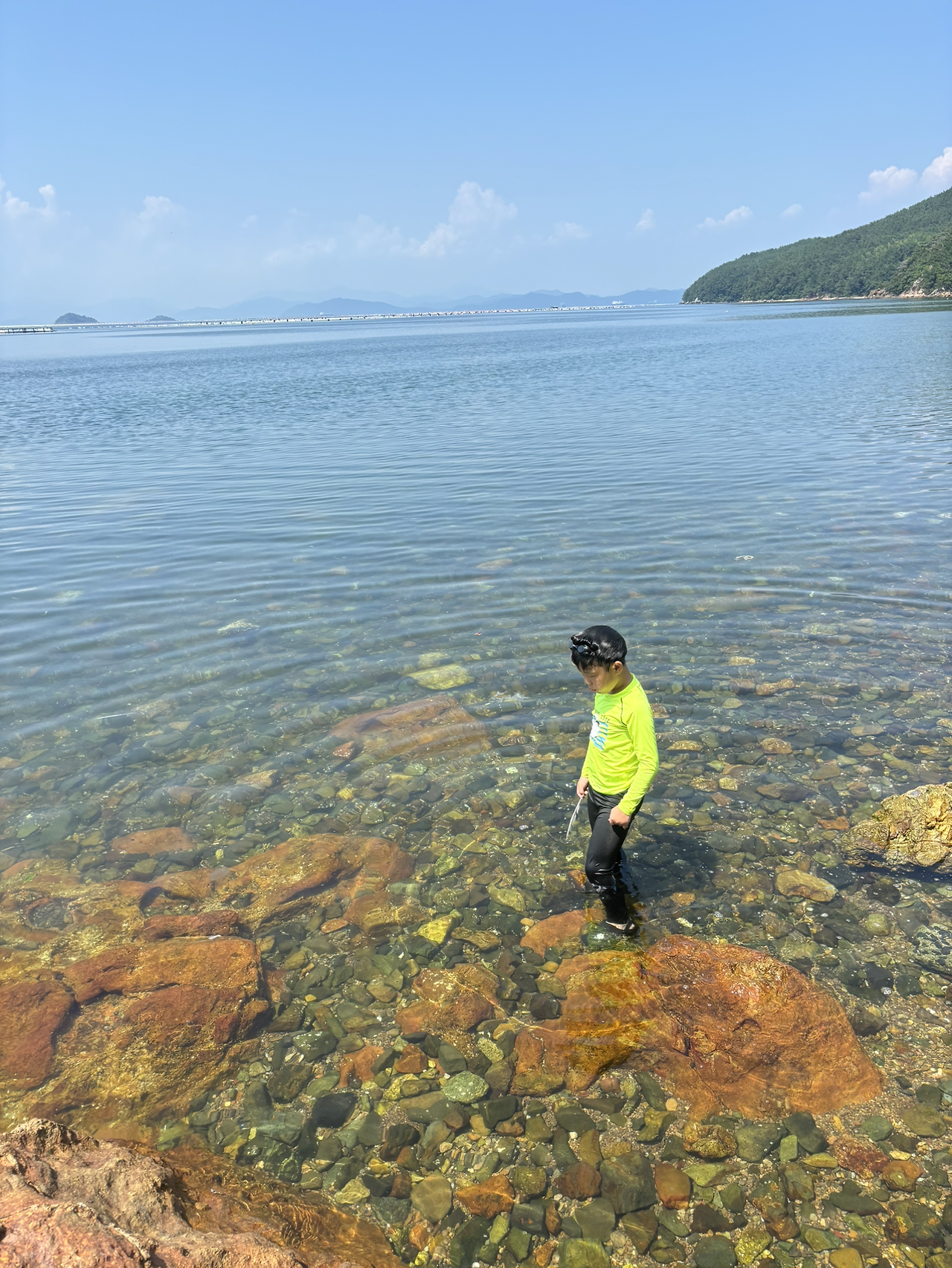 세상은 바다다. 기분 좋게 찰랑거리는 파도가 있을 때도 있고, 모든 것을 집어 삼킬 것만 같은 두려움을 몰고 올 때도 있다. 우리는 그 바다를 바라보거나 생각하며 산다. 겉으로는 아무 것도 변한 것이 없는 것처럼 서 있지만 속에서는 수천 번의 폭풍이 몰아친 후 다시 평온이 왔다. 이 날은 햇살이 무섭게 내리쬐는 날이었다. 게와 물고기를 좇아 헤엄을 쳤다. 아이가 등에 업혀 물속에서 들리지 않은 목소리를 손으로 새기면서 내게 전했다. 기분이 좋았다.