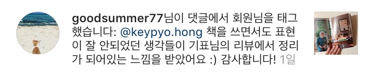 작가님 인스타그램에 댓글 달았는데, 친히 피드백을 주셔서 반가움에 캡쳐