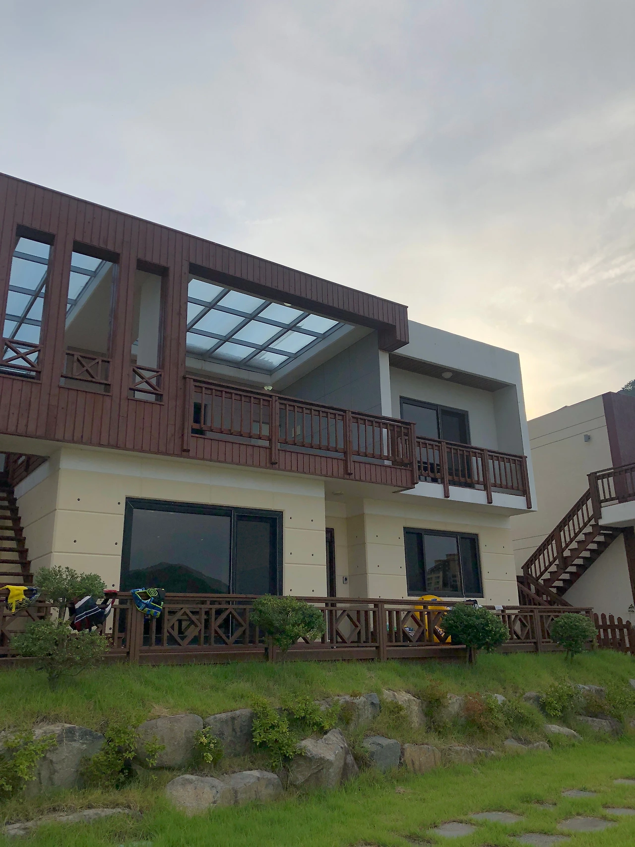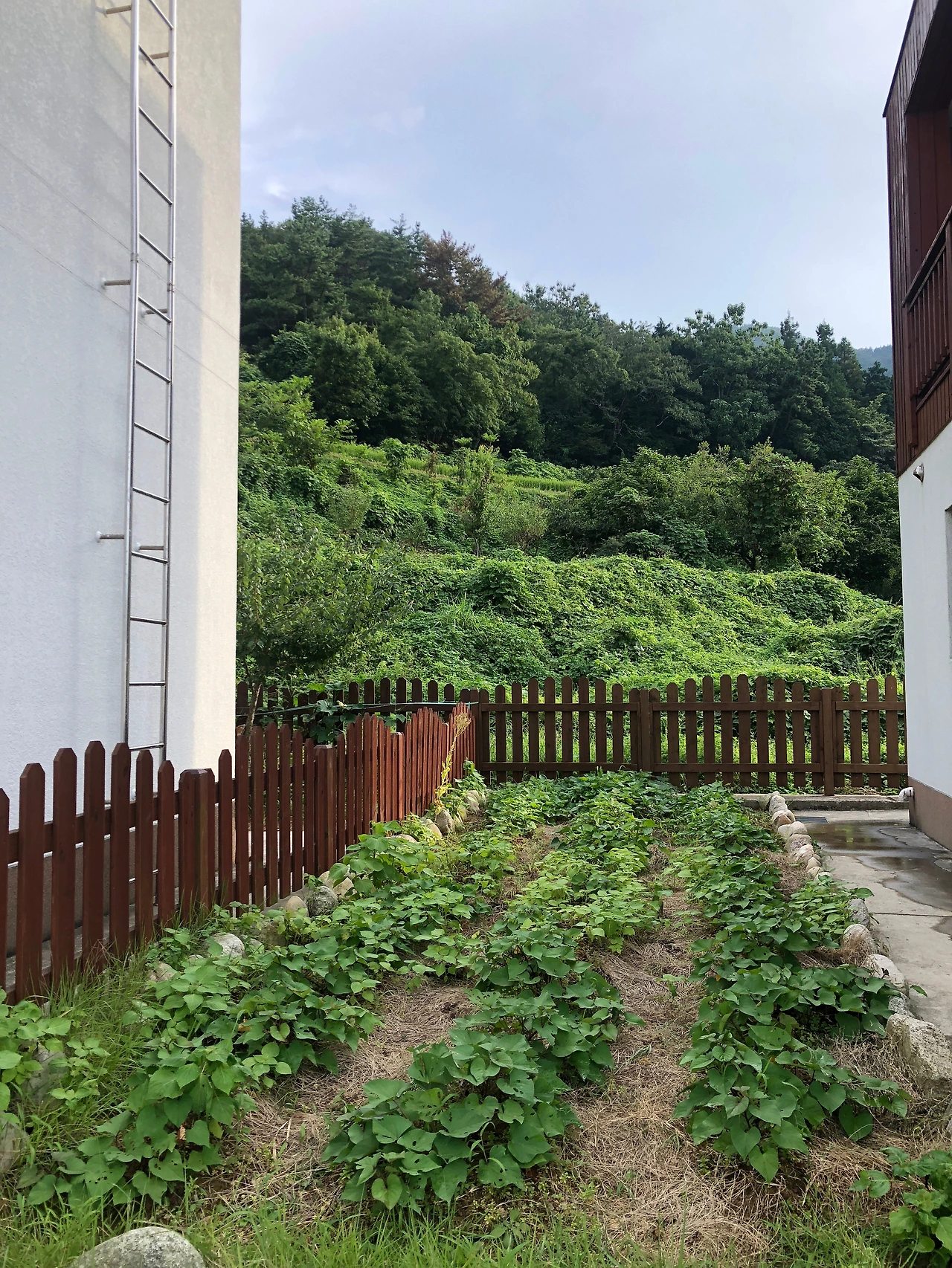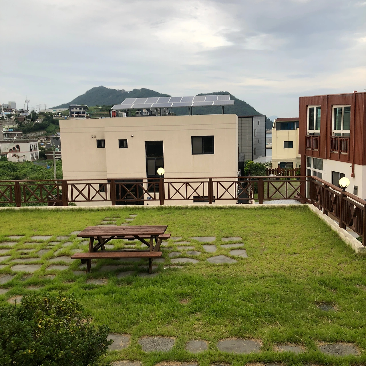 숙소가 위치한 곳은 언제 지어졌는지는 모르겠으나 비슷하게 생긴 주택들이 7채 정도 모여 있는 곳이었다. 이층 집들이 다들 똑같아 보였지만 자세히 보면 조금씩 달랐다. 우리가 머문 곳은 다른 주택과는 달리 이층을 야외 테라스로 쓸 수 있도록 만들어진 곳이었다. 경환이는 이 집만 에어비엔비를 통해서 펜션처럼 활용하고 있다고 했다. 저녁을 먹기 위해 잔디가 자란 마당에 숯을 피우고 음식을 나르는 도중에 옆 집에 사는 사람들이 간간히 모습을 드러냈다. 화단에 물을 주거나 빨래를 널거나 먼지떨이로 집 주변을 청소하는 등 오늘 할 일을 마무리하는 모습이었다. 각자 주어진 사회생활을 마감하고 여생을 조용히 시골에서 보내고자 하는 꿈을 실현하신 분들 같았다. 그에 비해 우리는 너무 젊고, 신나 있었다. 이런 우리 같은 사람들이 이 동네에서 활개를 칠 수 있도록 한 무책임한 이 집주인이 그들에게는 얼마나 얄미울까 하는 쓸데없는 걱정도 들었다. 마침 갑자기 비가 내리가 시작했고 이층에 마련된 테라스로 급하게 장소를 옮기고 고기를 한 점 먹으면서 차라리 다행이다는 생각이 들었다.