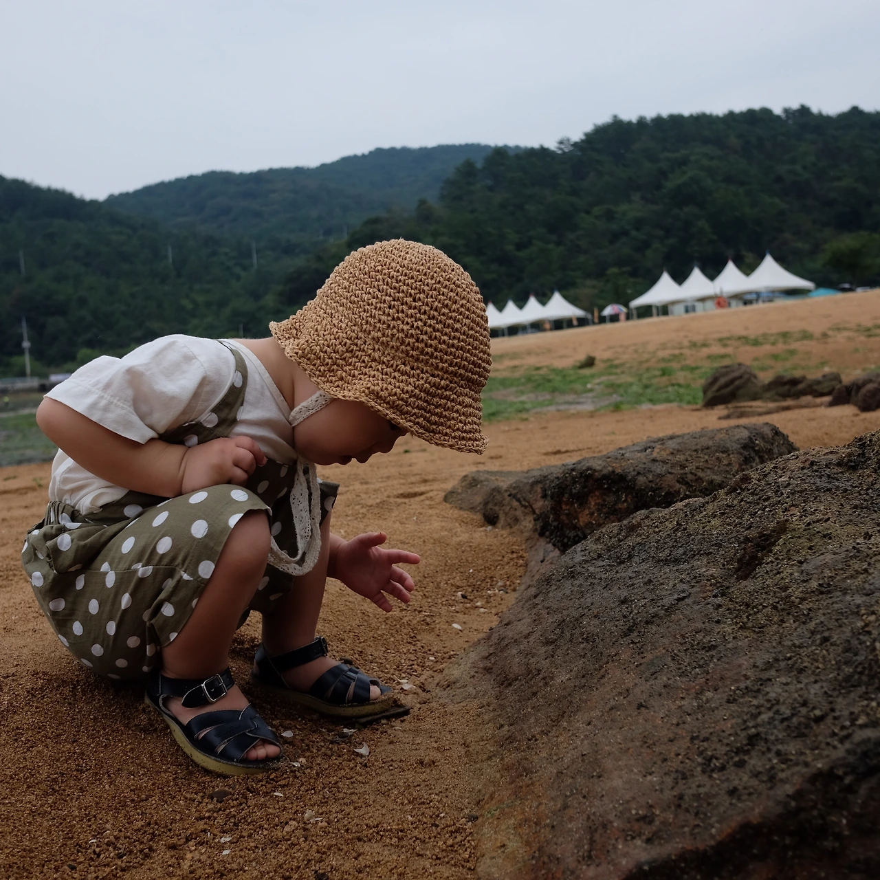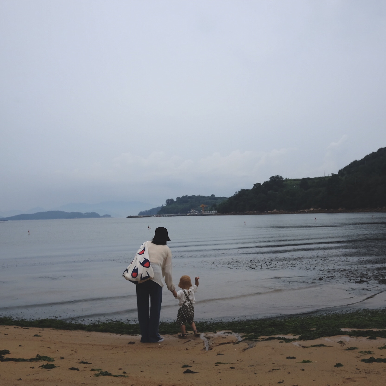 해수욕장으로 들어가니 위에서 바라봤던 차들은 캠핑을 즐기는 중이었다. SUV나 캠핑카를 몰고 와 텐트를 치거나 파라솔 같은 것을 머리 위로 펼치고 여유를 부리는 식이었다. 날씨는 비가 와서 어두웠고, 캠핑을 즐기는 사람들은 몇 안 되는 무리라서 그 모습이 마음에 퍽 와 닿지는 않았지만, 쨍쨍한 주말 오후에 그 모습을 대입해보니 언제 한 번 해보고 싶다는 생각이 들었다. 그렇지 않아도 오는 길에 거제도에서 캠핑하면서 즐기는 부부 이야기를 나누며 왔던지라 지상이가 조금 더 크면 이렇게 장소를 마련해서 맛있는 음식과 좋은 음악, 그리고 독서와 대화가 있다면 더할 나위 없을 거라는 생각이 들었다.