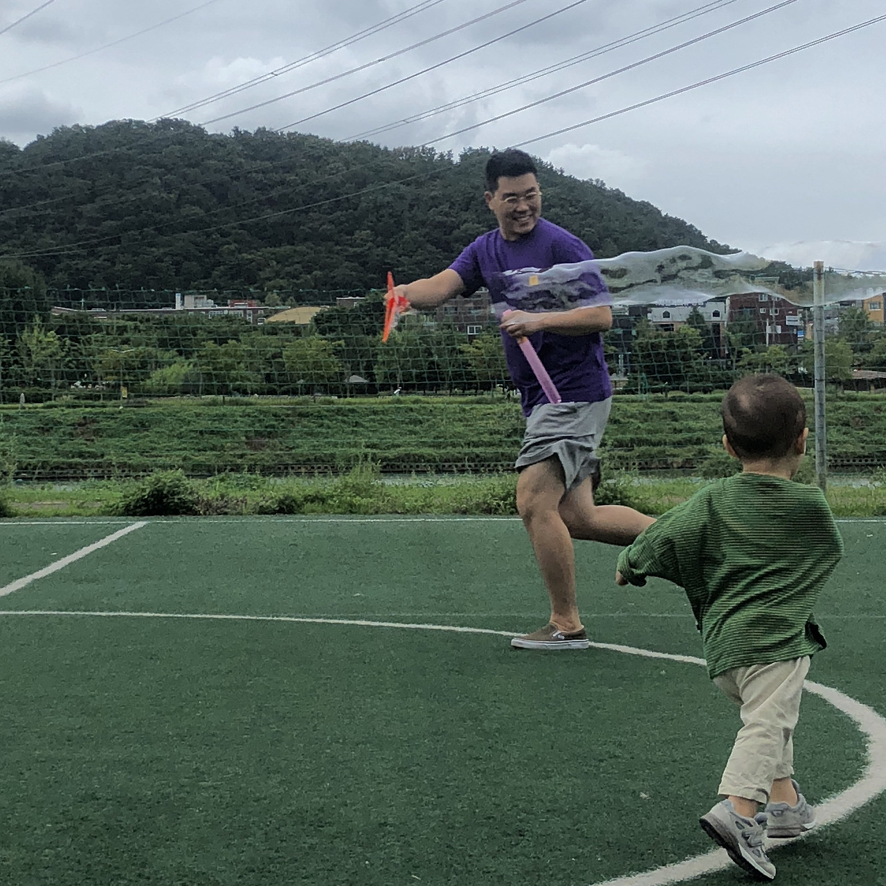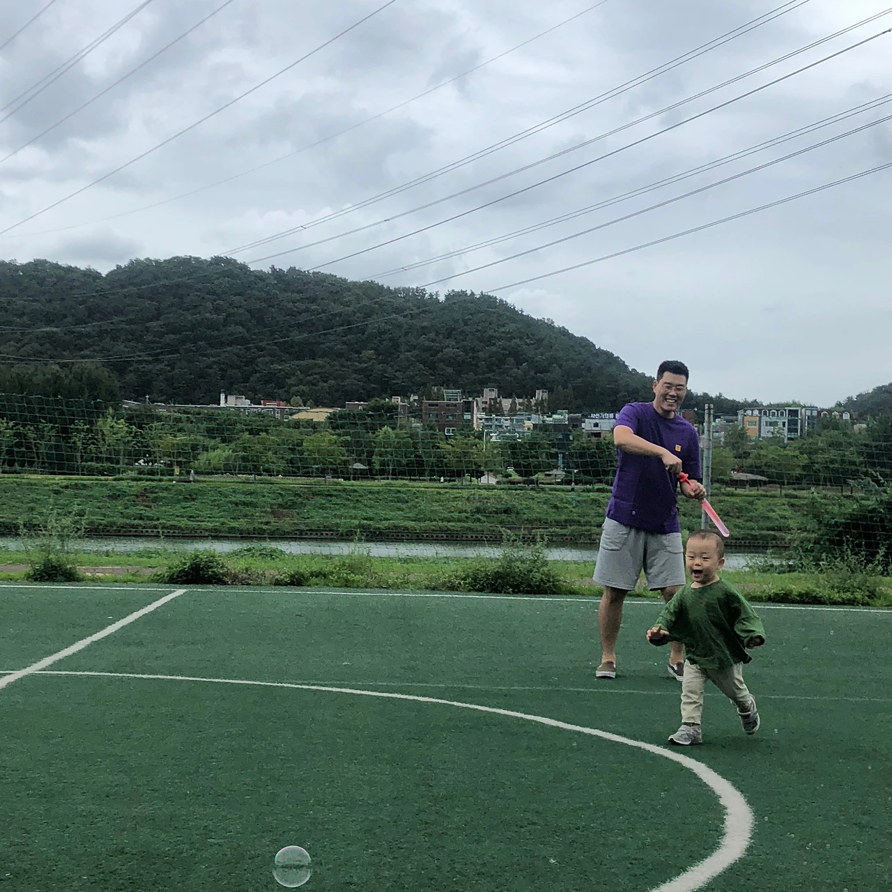 가끔 이런 생각을 한다. 아이는 그 존재만으로도 좋지만, 과거의 시간이 아이에게 머물 때 나는 다시 새로워지는 것을 느낄 수 있다. 자주 범람하는 강을 옆에 낀 공원에서 나는 외롭게 혼자서 농구공을 던지곤 했다. 지금은 이렇게 내 아이와 함께 뛰어논다. 공간은 그대로였지만, 잔디도 아이도 그리고 우리 오늘의 시간도 모든 게 새롭다. 자라날 아이가 무엇이 될지는 모르겠지만, 나도 그 공원처럼 새롭게 단장하고 아이가 뛰어놀 수 있는 곳이 되었으면 좋겠다. 추억이 쌓여 그 아이에게만 있는 기분 좋은 기억의 공간이 되면 좋겠다는 생각이 든다.