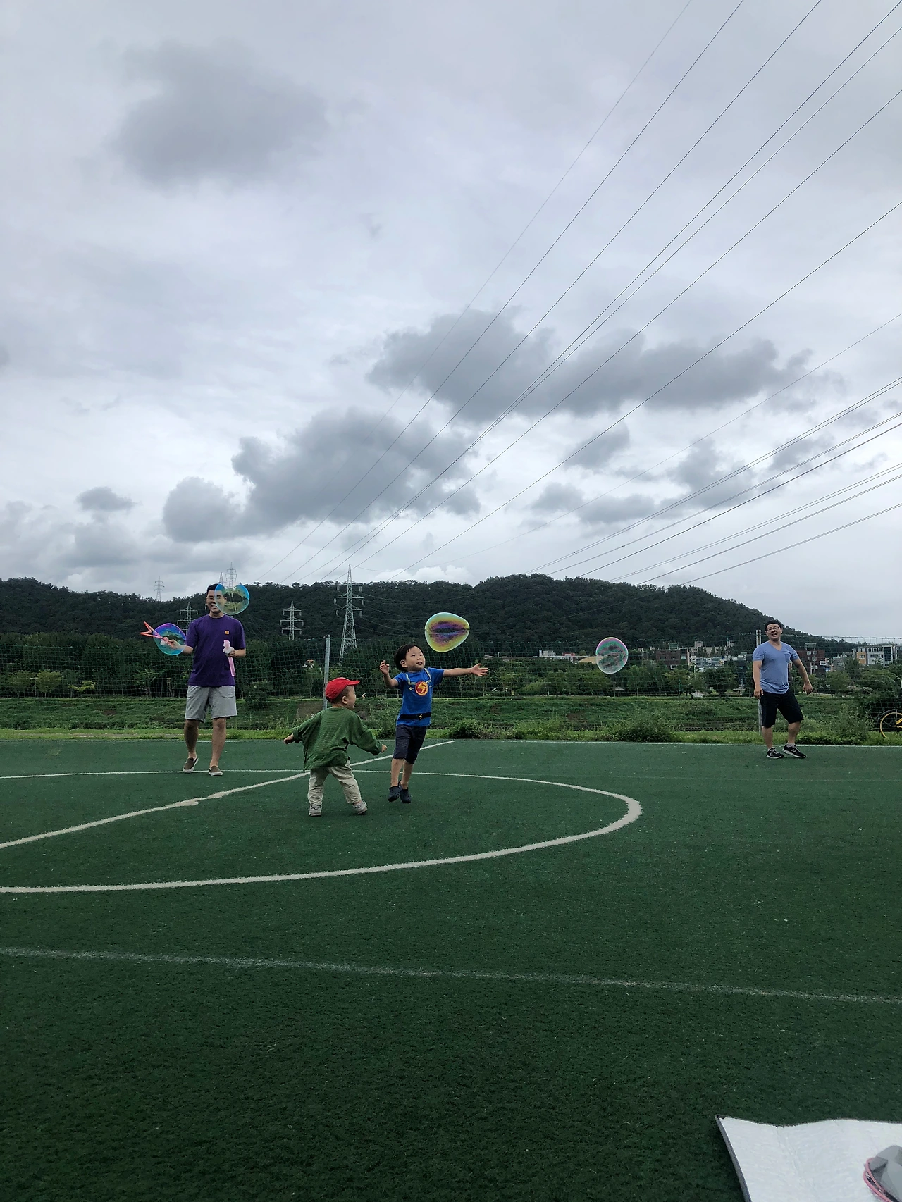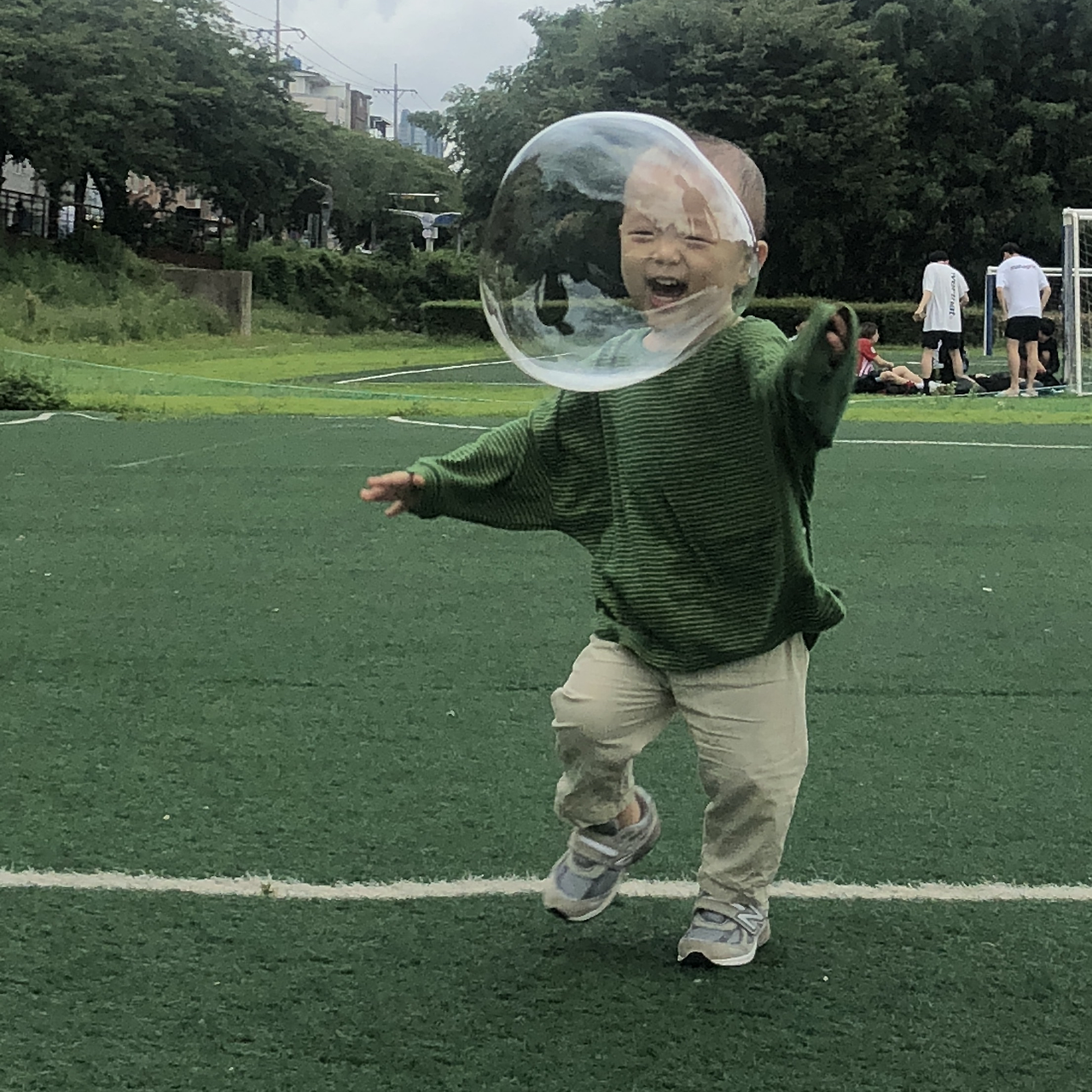 올 추석에는 지상이 큰 고모가 사둔 비눗방울을 들고 그 공원으로 나갔다. 방울이라기보다는 풍선이라고 불러야 어울릴법한 것이었는데, 방울을 만들어 날려 보내기가 생각보다 싶지 않았다. 통을 잡은 손이 비누 거품에 둘러싸였을 때서야 어느 정도 익숙해졌고 지상이가 신이 나서 뛰어노는 모습에 기분이 아주 좋았다. 아내와 지상이 큰 고모는 자리를 깔고 앉아 그 모습을 구경했다. 곧이어 지상이 작은 고모와 고모부가 합류했고, 시장에서 싸온 찹쌀 도넛을 먹으니 가족소풍을 나온 듯했다. 풍선 같은 비눗방울은 바람을 타고 여기저기 날아다녔고 지나가던 동네 꼬마들도 가는 걸음을 멈추고 풋살장으로 들어와 껑충 뛰어 비누 풍선을 따라다니는 것에 정신이 팔렸다. 그만 가자는 부모의 외침은 터지는 풍선처럼 오래가지 못했다.