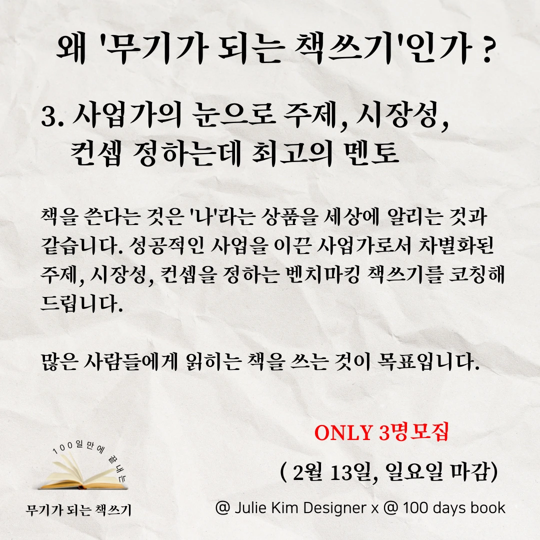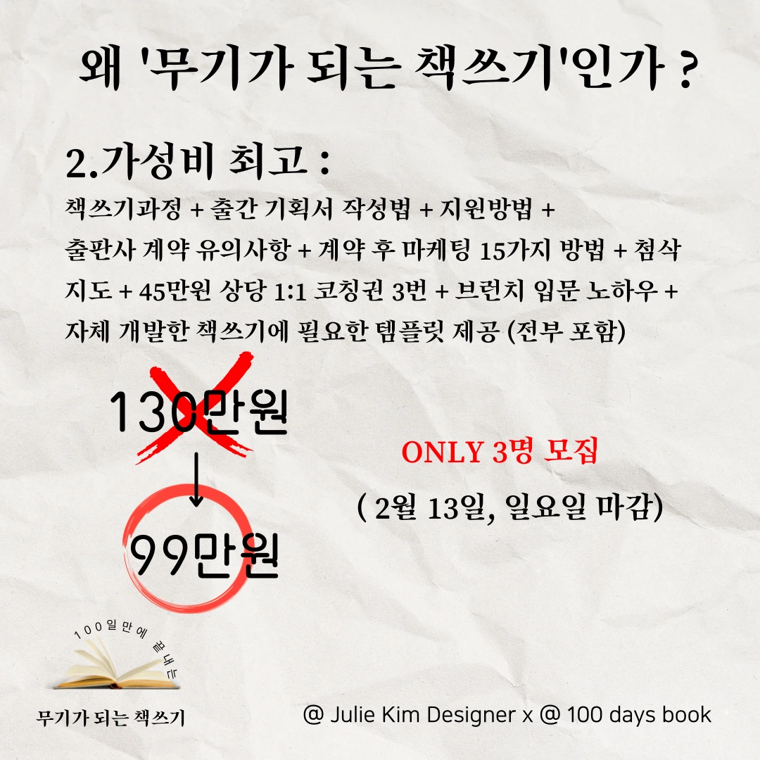 (공고 : 100일 만에 무기가 되는 책쓰기 프로젝트는 마감되었습니다.)