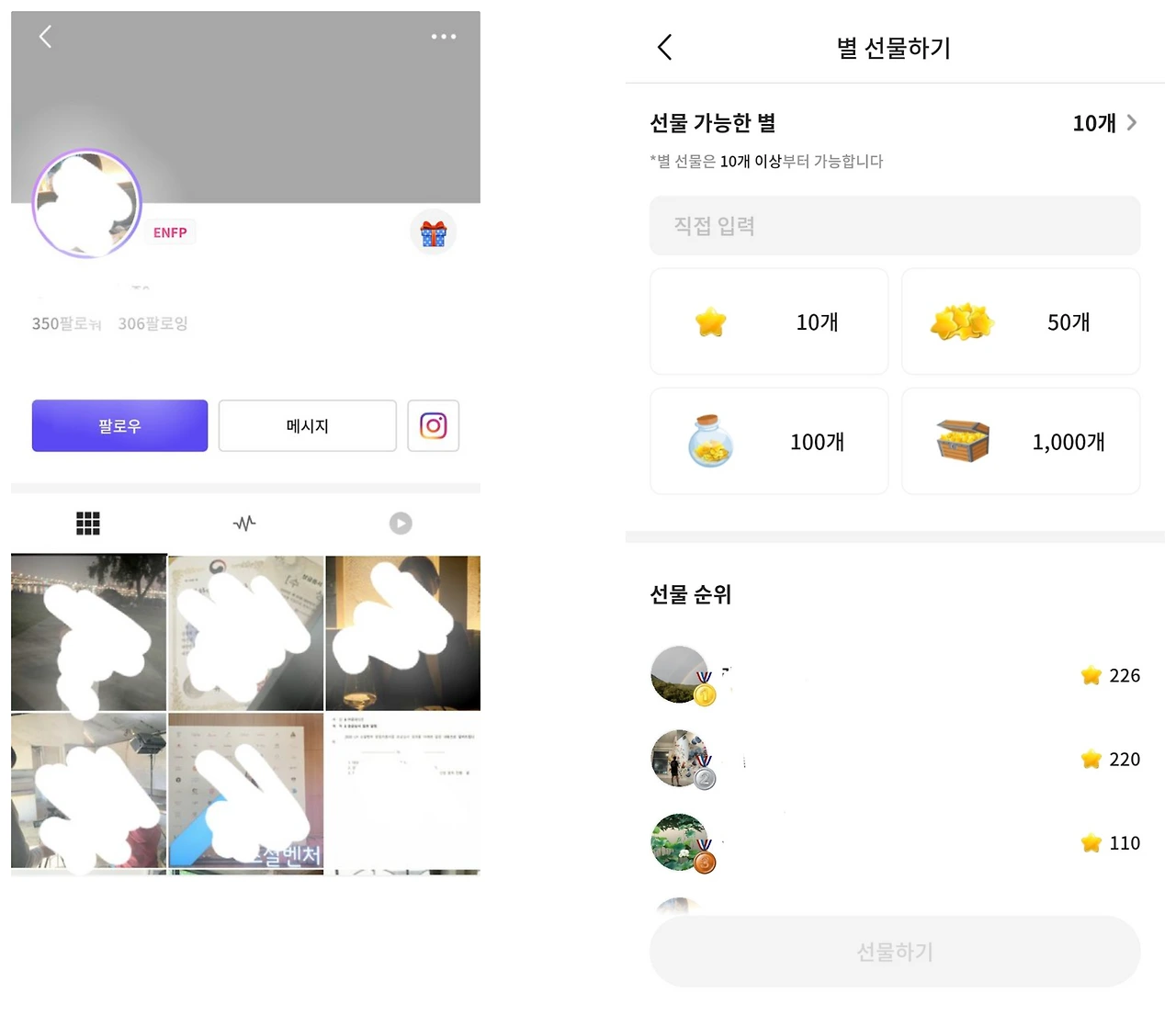 <흐름 드 살롱>을 쓰면서 가장 참신하면서 어색하다고 느껴졌던 부분은 <DJ 페이지>다. 플레이리스트를 만드는 DJ들도 하나의 크리에이터기 때문에 Fan들이 팔로우하고, 구독할 수 있도록 지원한다. DJ들은 자신의 일상을 공유하고, 개인 인스타그램 링크로 바로 연결할 수 있다. 또한 구독자들은 DJ에게 후원하면서 자신의 팬심을 드러낼 수 있다. 앱을 둘러보면서 각 DJ들이 후원받은 내역을 살펴보니 보통 5000원 ~ 5만 원 선으로 가볍게 선물을 전하는 것 같다. 다만, 큐레이팅 형태로 콘텐츠를 만드는 DJ들이 자신의 일상을 왜 공유하고 싶어 할까?라는 의문이 들었다. 실제로 피드에 아무것도 올리지 않은 DJ들이 많았고, 올린 사람도 자신의 사진보다는 상관없는 이미지와 짧은 글이 주를 이루었다.