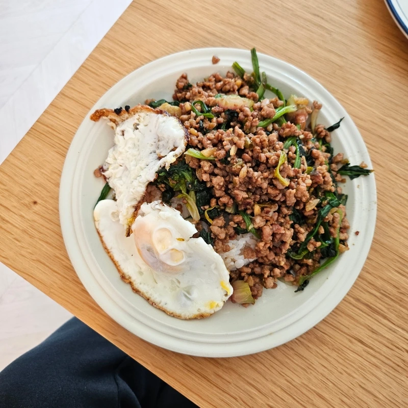 “오늘의 제철 음식 : 태국식 시금치 덮밥”