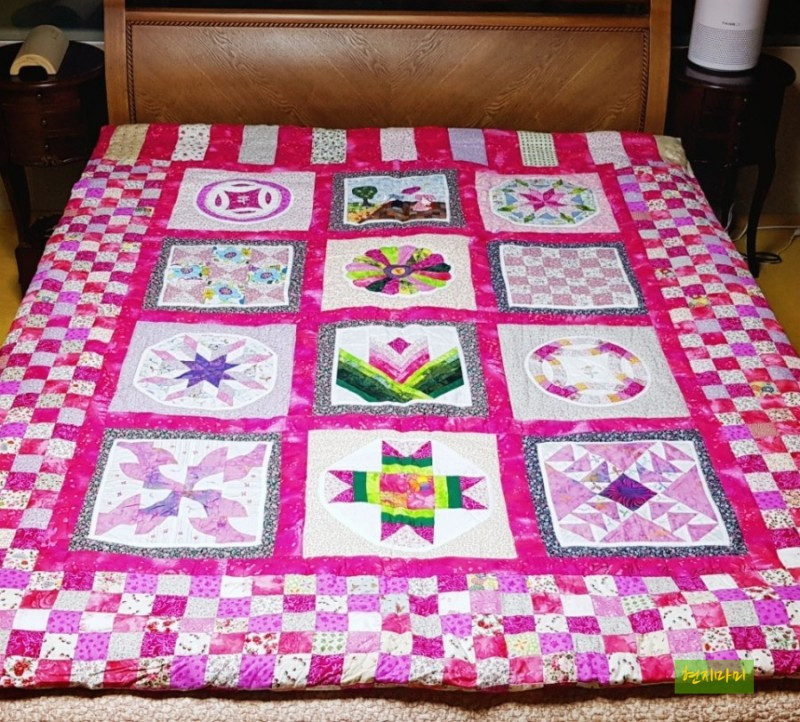 그때는 딸이 결혼을 생각할 나이도 아니었는데 "우리 딸 시집갈 때 줘야지!'라고 생각하며 이렇게 꽃분홍이 가득하게 얹힌 화사한 이불을 만들었습니다. 지금 생각해 보니 제가 일러도 너무 이른 생각을 했나 보다 하는 생각이 듭니다. 8년이 지난 지금도 딸은 시집을 안 가고 있으니까요.