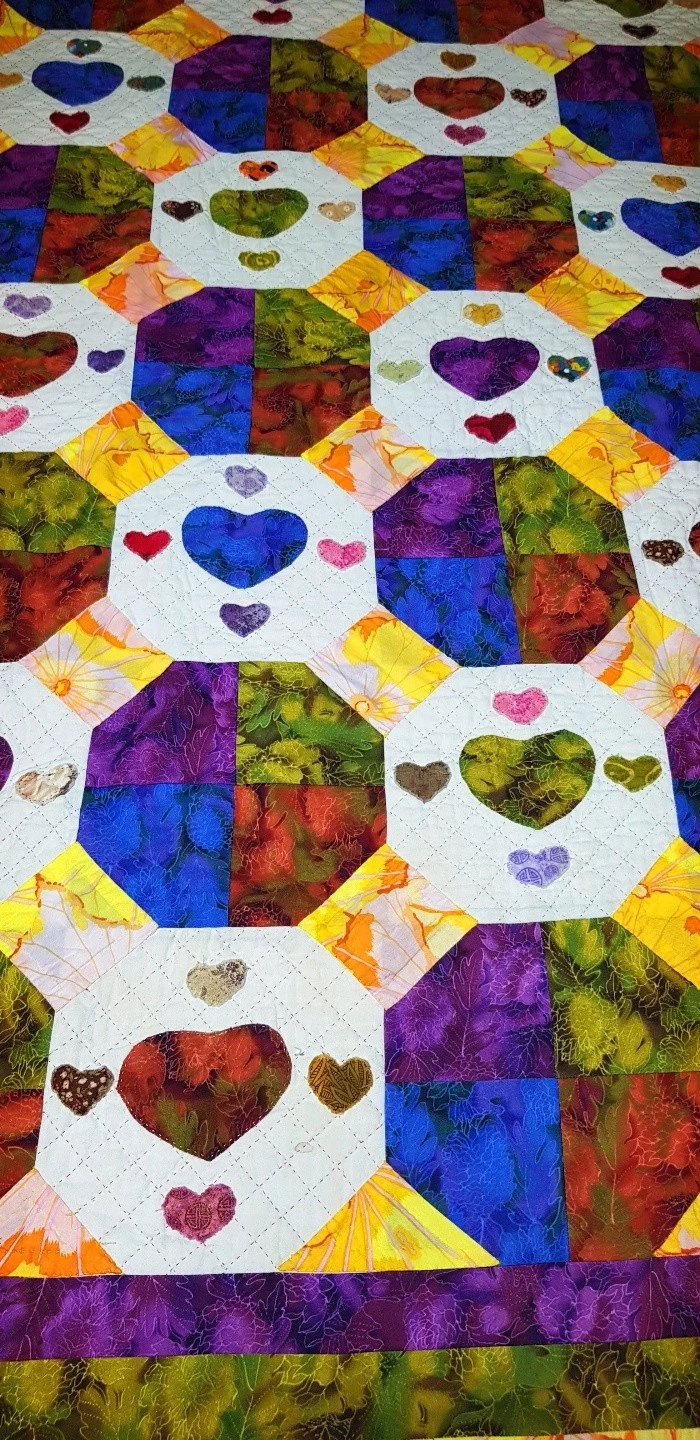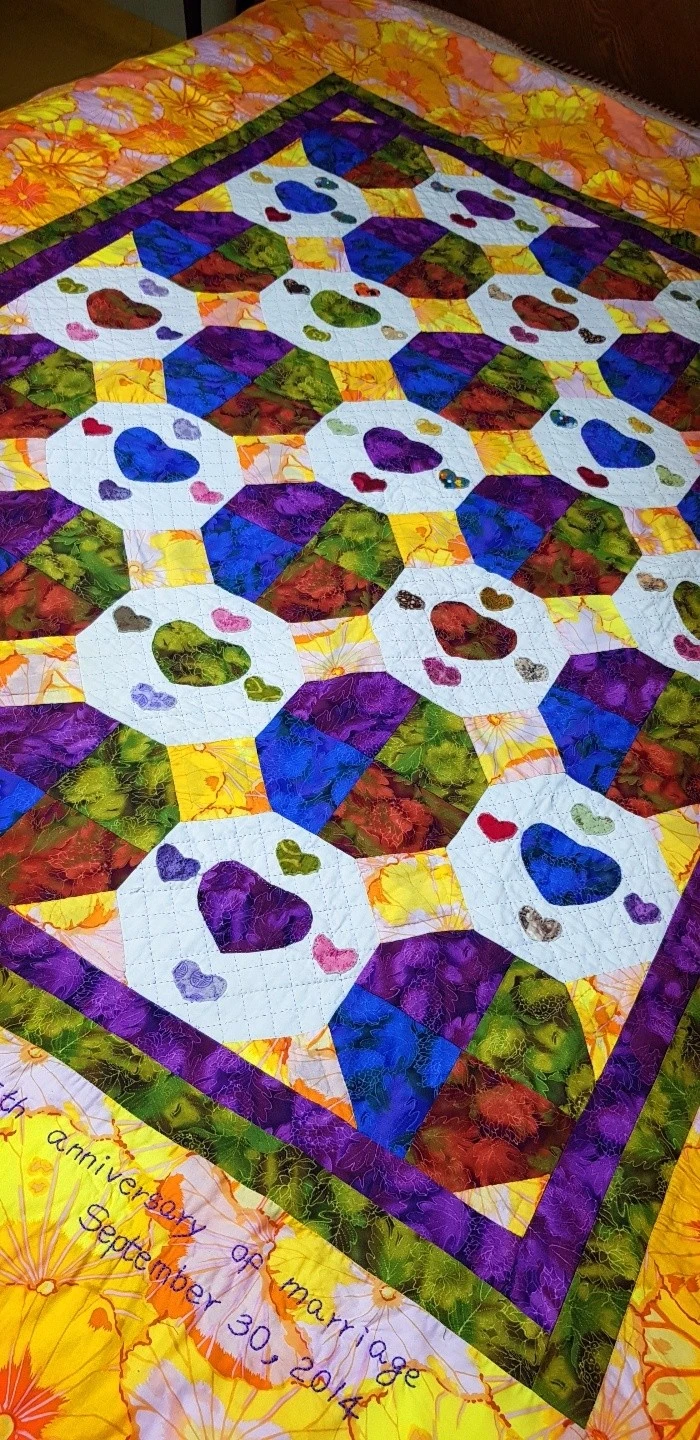 오늘 소개할 퀼트 작품은 저희 부부가 은혼식이 되던 해에 만들었던 하트 뿅뿅 퀼트 이불입니다.^^