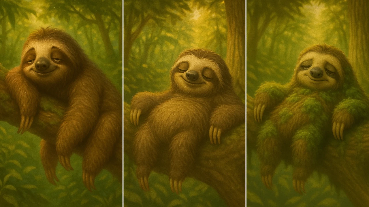 몸에 이끼가 자란 나무늘보의 귀여운 모습을 AI로 그려았다 :)