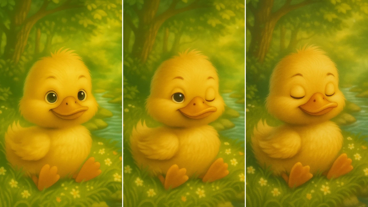 그럼에도 내가 이 주제를 오리로 넣은 것은 오리가 한쪽 눈만 감은 모습이 너무 귀여울 것 같아서였다. 그 모습을 AI로 그려보았다 :)