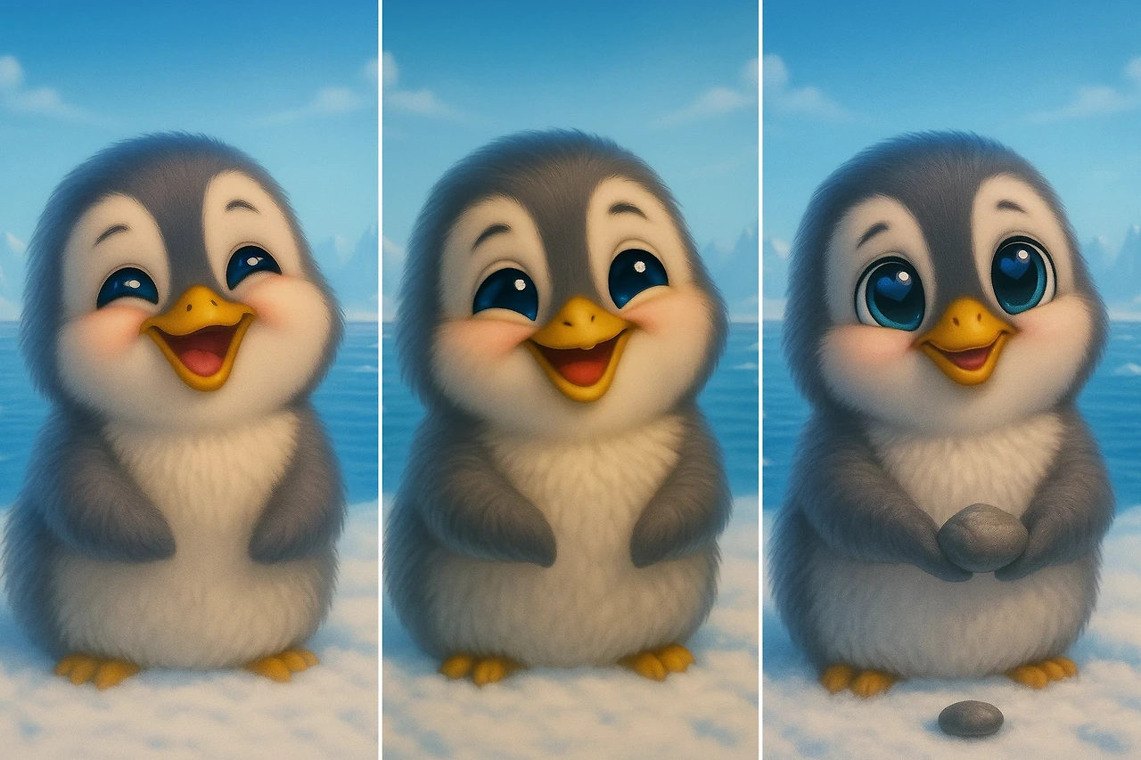 조약돌을 건네는 귀여운 펭귄의 모습을 AI로 그려보았다 :)