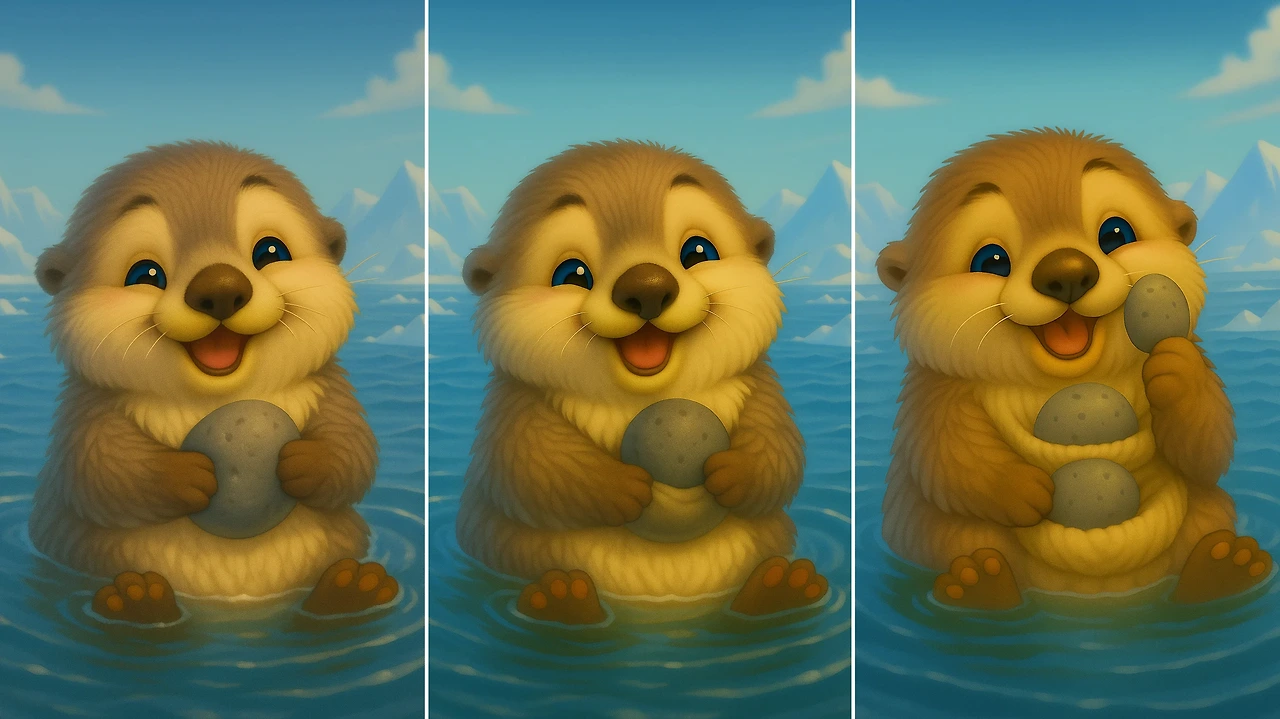 애착 돌을 처진 피부 주머니에 넣는 해달의 모습을 AI로 그려보았다 :)