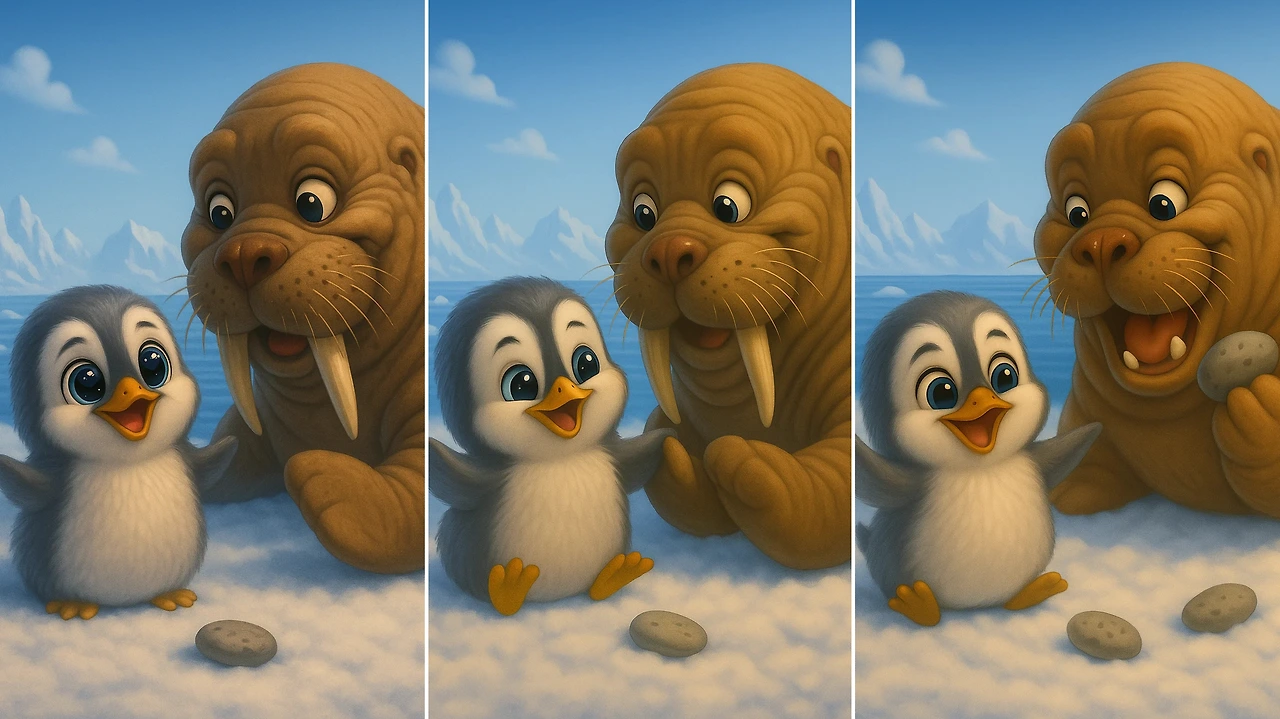 그때엔 바다코끼리가 막연하게 무서웠는데, 이번에 바다코끼리에 대해 공부하면서 조금은 더 귀여워졌을지도 모르겠다. 그런 기념으로 펭귄과 사이좋게 지내는 바다코끼리의 모습을 AI로 그려보았다 (잡아먹으려고 하는거 아니다ㅎㅎ)