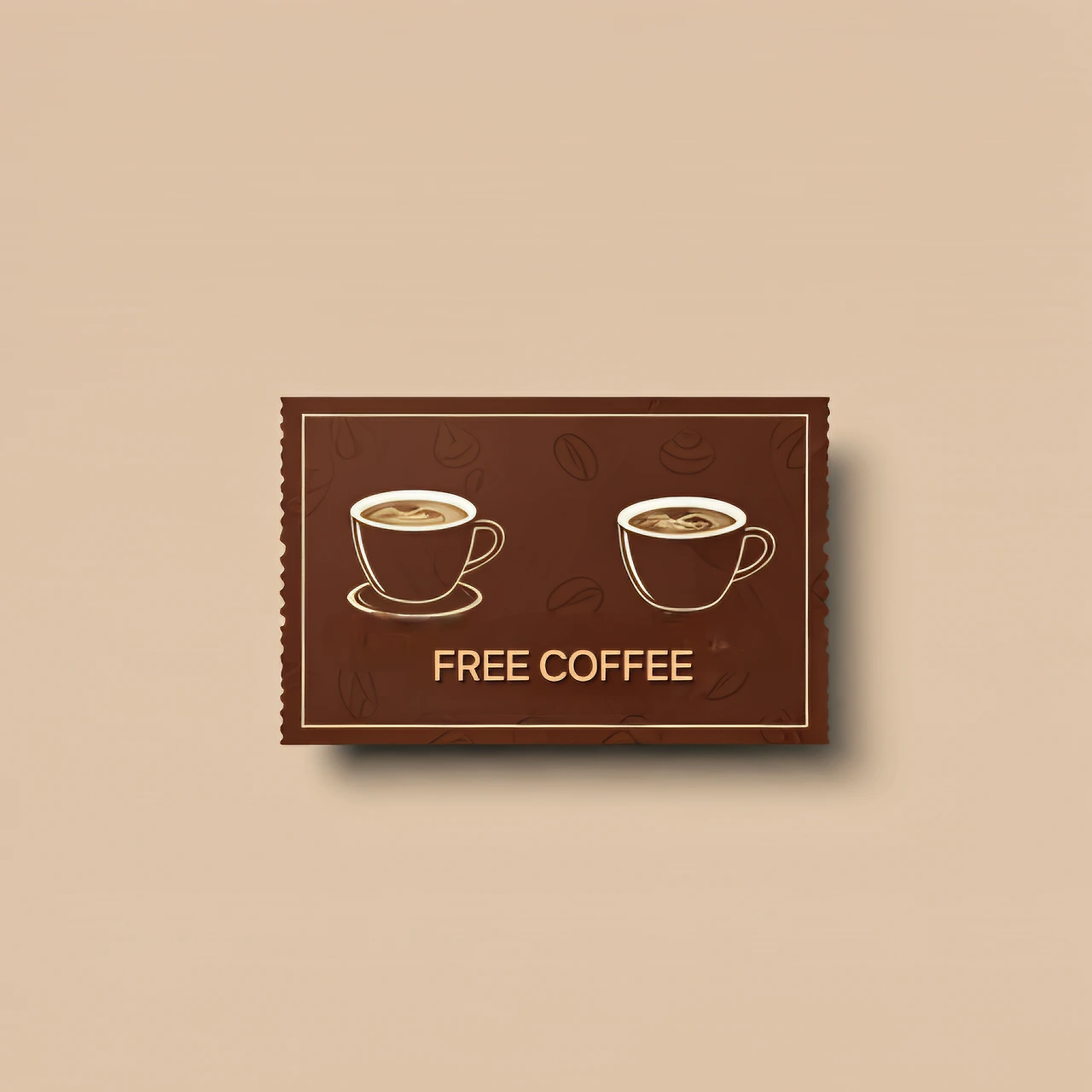 "두 잔 무료 쿠폰이네요. 나눠서 쓰실 수는 없으셔서 커피 두 잔 준비해 드릴게요. 테이크아웃 맞으시죠?"