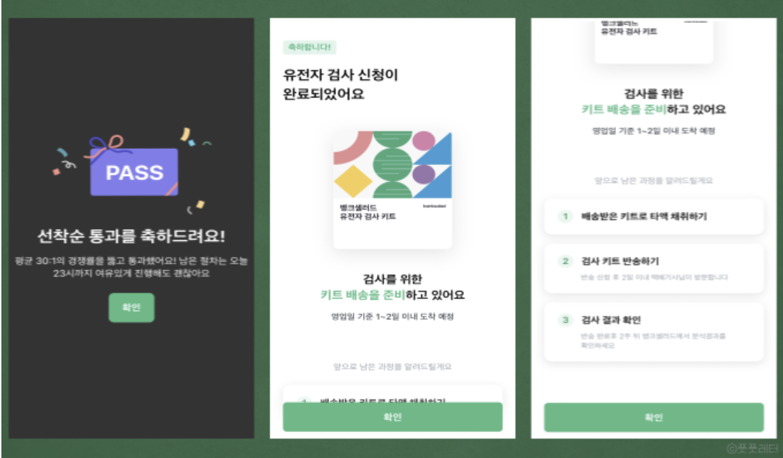 뱅크샐러드에서는 매일 오전 10시, 선착순 신청을 받아 무료로 유전자 검사를 진행하고 있어요. (키트 택배를 포함한 모든 검사 비용 전액 부담) 하루 500명에서 700명으로 인원을 확대했지만, 여전히 평균 30:1의 경쟁률을 보이고 있습니다.