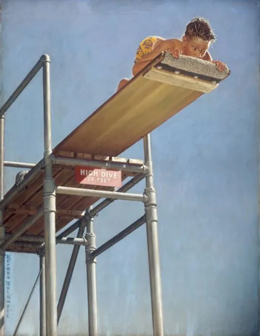 더욱 흥미로운 건 <파벨만스>가 노년에 이른 대가가 남긴 만년의 소회가 아니라 여전한 청년의 영화처럼 보인다는 사실이다. 자신의 대단한 경력이 아닌 원점을 조명한 영화라는 점 역시 새로운 전환점을 마련하겠다는 야심처럼 읽힐 정도다. 스필버그는 35mm 카메라로 찍은 26분짜리 단편 <앰블린>으로 유니버설 스튜디오의 감독으로 낙점돼 21살이라는 빠른 나이에 감독으로 데뷔했다. 그만큼 기념비적인 영화라 할 수 있는 <앰블린>은 스필버그가 세운 영화사의 이름이 됐고, 스필버그의 영화는 늘 <E.T.>에 등장하는 자전거 비행 장면을 연상시키는 이미지와 함께 떠오르는 앰블린 스튜디오의 로고로 시작된다. 스티븐 스필버그의 앰블린 스튜디오에는 그가 애장하는 미국 일러스트 작가 노먼 록웰의 작품이 곳곳에 걸려있는데 그중에서도 스필버그는 <고공 다이빙대 위의 소년(High Dive)>이라는 작품을 가장 좋아한다고 한다. 겁에 질린 듯한 소년이 다이빙 보드 위에 웅크리고 누워서 아래를 내려다보는 이 그림은 스필버그가 늘 영화를 시작할 때마다 떠올리게 되는 이미지라고 한다. 영화는 그에게 여전한 경외와 동경의 세계인 것이다.