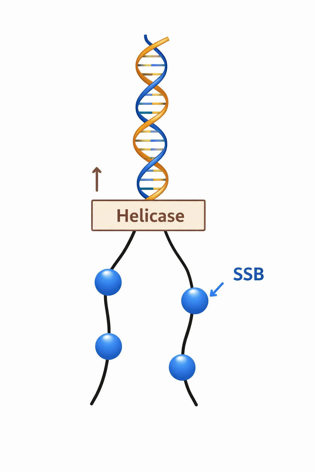 여기서 문제가 두 개 발생한다. 첫 번째, DNA는 단일가닥으로 있을 때 상당히 불안정하다는 것이다. 그래서 얼른 다른 염기쌍과 다시 붙어버리려 하기 때문에, 이를 방지해 줄 기계가 필요하다. 이 기계, 단백질의 이름은 '단일가닥 결합 단백질'(SSB)이다. 이름 뜻 그대로 단일가닥에 결합해 가닥이 복제 과정에서 안정적으로 존재할 수 있게 유지해 주는 역할이다.