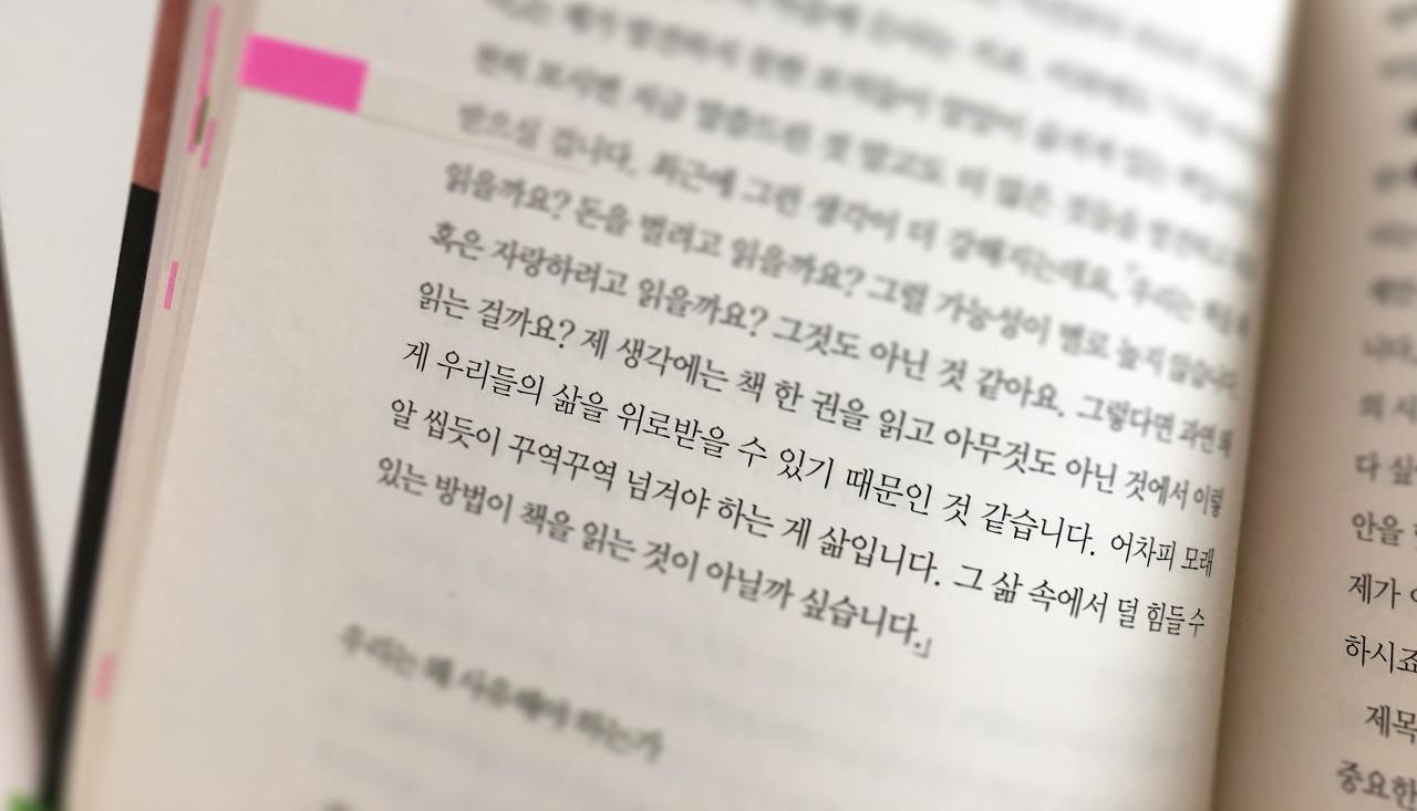 우리는 책을 왜 읽을까요? 돈을 벌려고 읽을까요? 그럴 가능성이 별로 높지 않습니다. 혹은 자랑하려고 읽을까요? 그것도 아닌 것 같아요. 그렇다면 과연 왜 읽는 걸까요? 제 생각에는 책 한 권을 읽고 아무것도 아닌 것에서 이렇게 우리들의 삶을 위로받을 수 있기 때문인 것 같습니다. 어차피 모래알 씹듯이 꾸역꾸역 넘겨야 하는게 삶입니다. 그 삶 속에서 덜 힘들 수 있는 방법이 책을 읽는 것이 아닐까 싶습니다.
