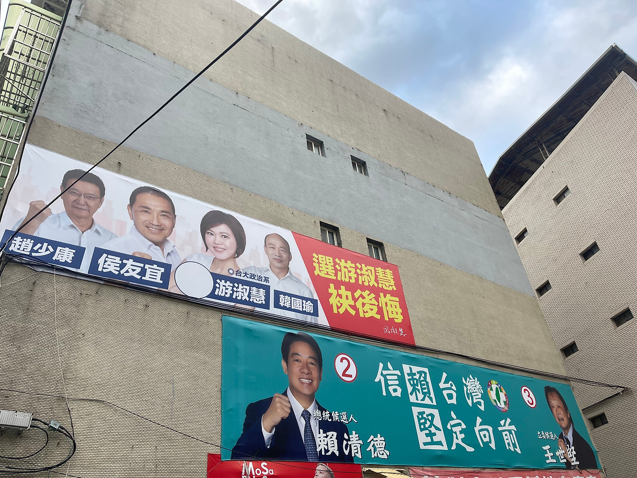 지금 살고 있는 타이베이 티엔무(天母)란 지역 현수막을 보면 민진당 현수막에는 라이칭더 총통후보 번호 2번과 지역구 입법의원 후보 번호 3번이 함께 들어가 있다. 국민당 현수막에는 이마저 번호가 없다. 후보가 정해진 뒤 선거기호 추첨이 나중에 이뤄지다보니 현수막에 그저 빈 동그라미만 있을 뿐이다. 추첨이 완료됐으니 이제 기입하긴 해야 하는데 인력이 부족한지 아직도 빈 동그라미다.