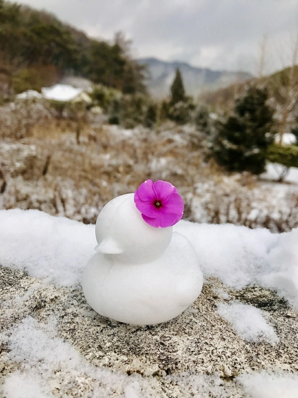 머잖아 16개월 된 손녀도 눈이라는 말의 의미를 알게 되고 눈사람을 만들며 놀자고 하는 날이 올 것이다. 그 때는 집안에서 눈사람 인형을 업고 다니던 아이가 처음으로 만든 눈사람이 이웃의 따뜻한 환대를 받기 바라는 마음이다.