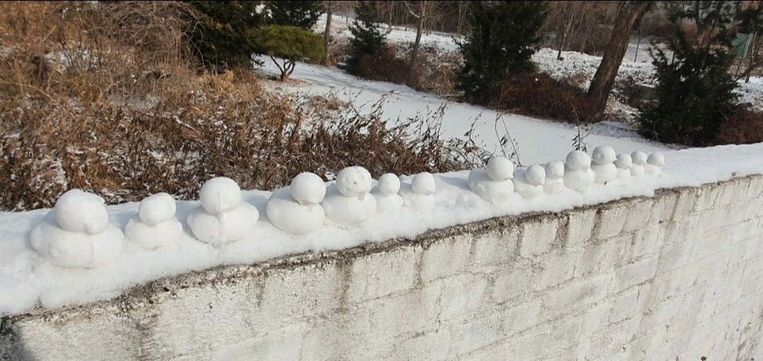 겨울이 깊어지면서 몇 차례 큰 눈이 내렸다. 집에 갇혀있던 아이들이 밖으로 나와 함박눈을 맞으며 뛰어다녔고 가족이 함께 눈을 뭉쳐서 눈, 코, 입을 장식하고 저마다 특색 있는 눈사람을 만들어서 세워두었다. 색색의 머플러와 모자로 멋을 낸 눈사람, 각종 캐릭터를 닮은 눈사람, 걸작 조각 작품을 복제한 눈사람까지 미술 전시회와 같이 기발한 작품들이 눈에 띄었다.
