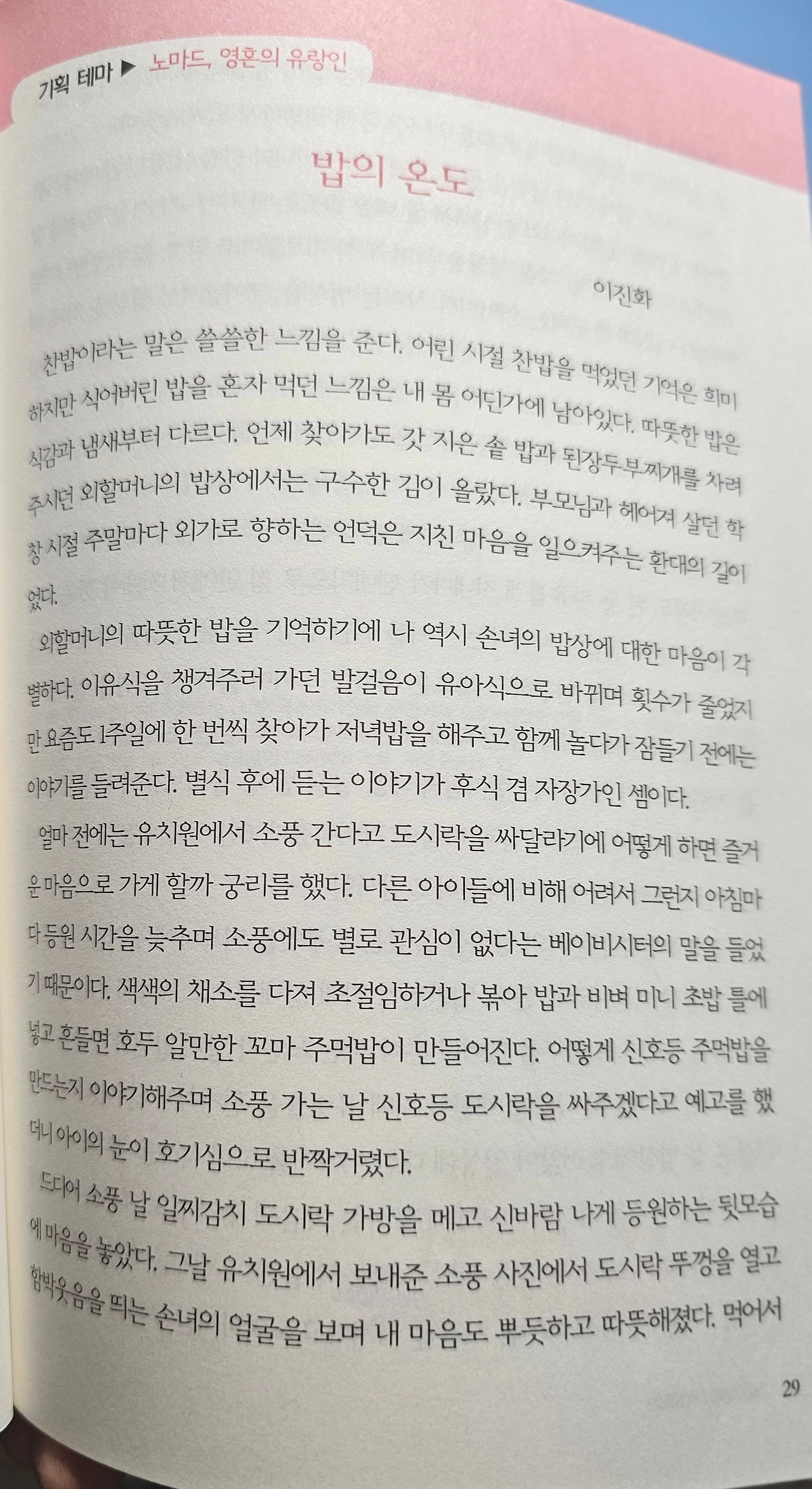 이런저런 생각을 하다가 손녀에게 향하는 마음의 추가 홀로 계시는 어머니에 대한 무게보다 기운다는 것을 깨닫고 화들짝 놀란다. 형제들이 돌아가면서 어머니를 가뵙거나 함께 모이는 시간을 가지려고 노력하지만 우리는 어쩌면 그리 자연스럽게 내리사랑에 충실할까. 어머니를 따라 나이가 들어가는 사 남매가 아직도 어머니에 대한 사랑이 부족하고 미지근하건만 어머니는 매일 ‘밥은 먹고 다니냐’며 걱정을 하신다.