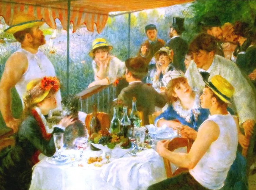 처음부터 그림을 그린 건 아니였다. 르누아르는 도자기 공방에서 도자기에 그림을 그리는 일 부터 시작했다. 돈을 벌기 위해 시작한 일이지만 그는 이곳에서 색채를 배웠고 섬세함을 익혔다. 르누아르는 마네의 <풀밭위의 점심>에서 빛을 바라보는 그의 시선에 반했다. 이것을 계기로 인상파 화가들과 어울리며 야외로 나가 그림을 그리기 시작했고 그들에게서 영향을 받아 작품의 윤곽선이 흐리고 터치가 거칠었다. 그런데 아이러니하게도 르누아르는 인상파속에 살았지만 그는 누구보다 인상파이길 거부했던 사람이기도 했다. 후에 라파엘로의 영향을 받아 인상파 전 고전주의에 관심을 가지게 되면서 그의 화풍은 많이 변화한다.