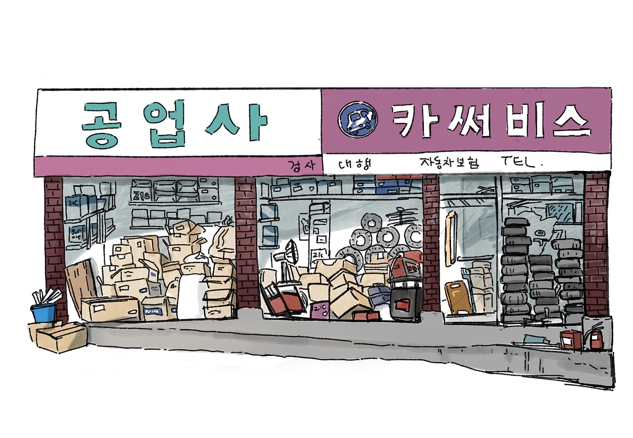 이름은 카센터이지만 , 카센터에 상관없는 모든 물건들을 한가득 발 디딜 틈도 없이 쌓아져 있다.