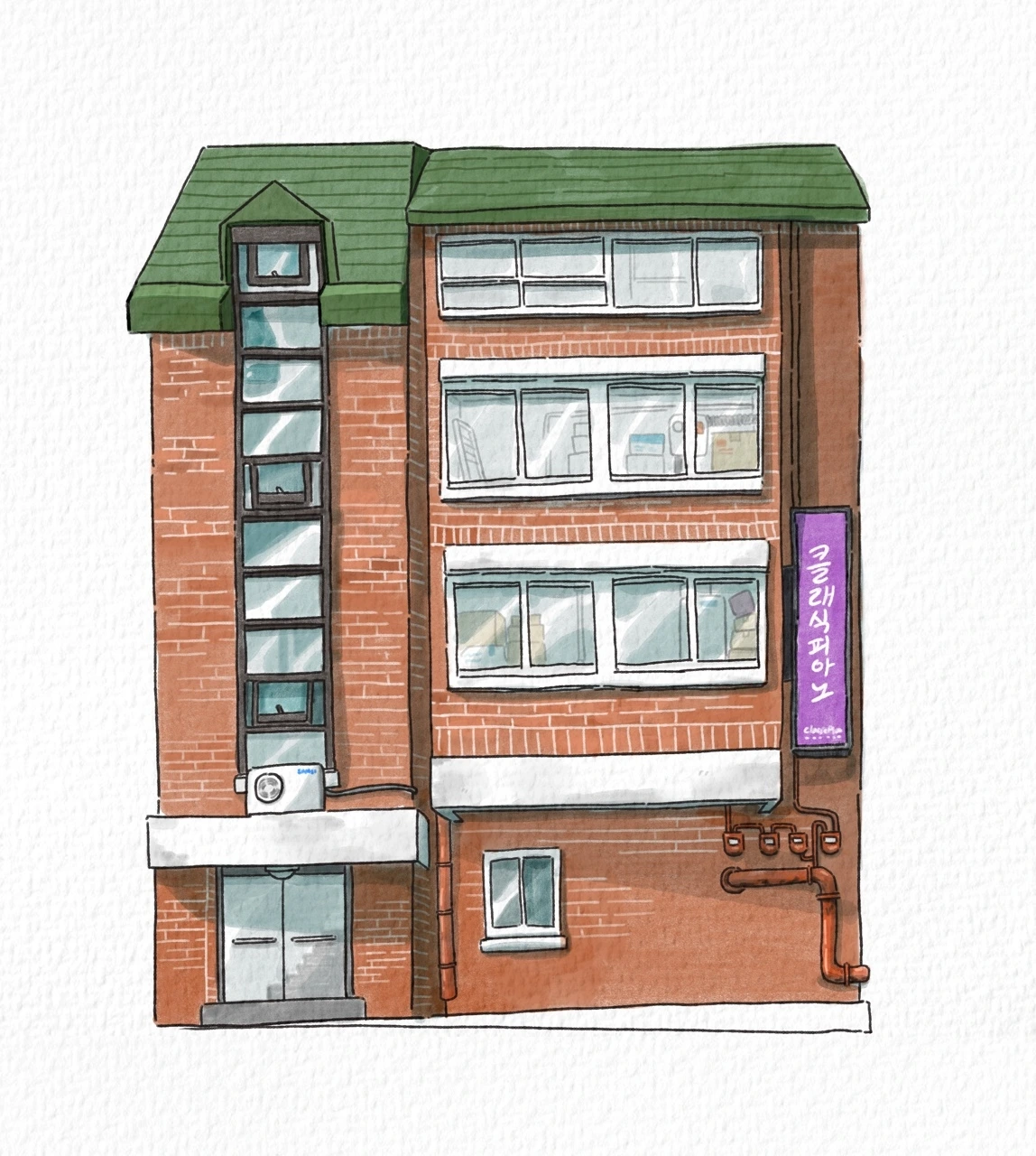 유럽 건물같은 느낌에 맞게 자그마한 피아노 학원이 자리하고 있는데,