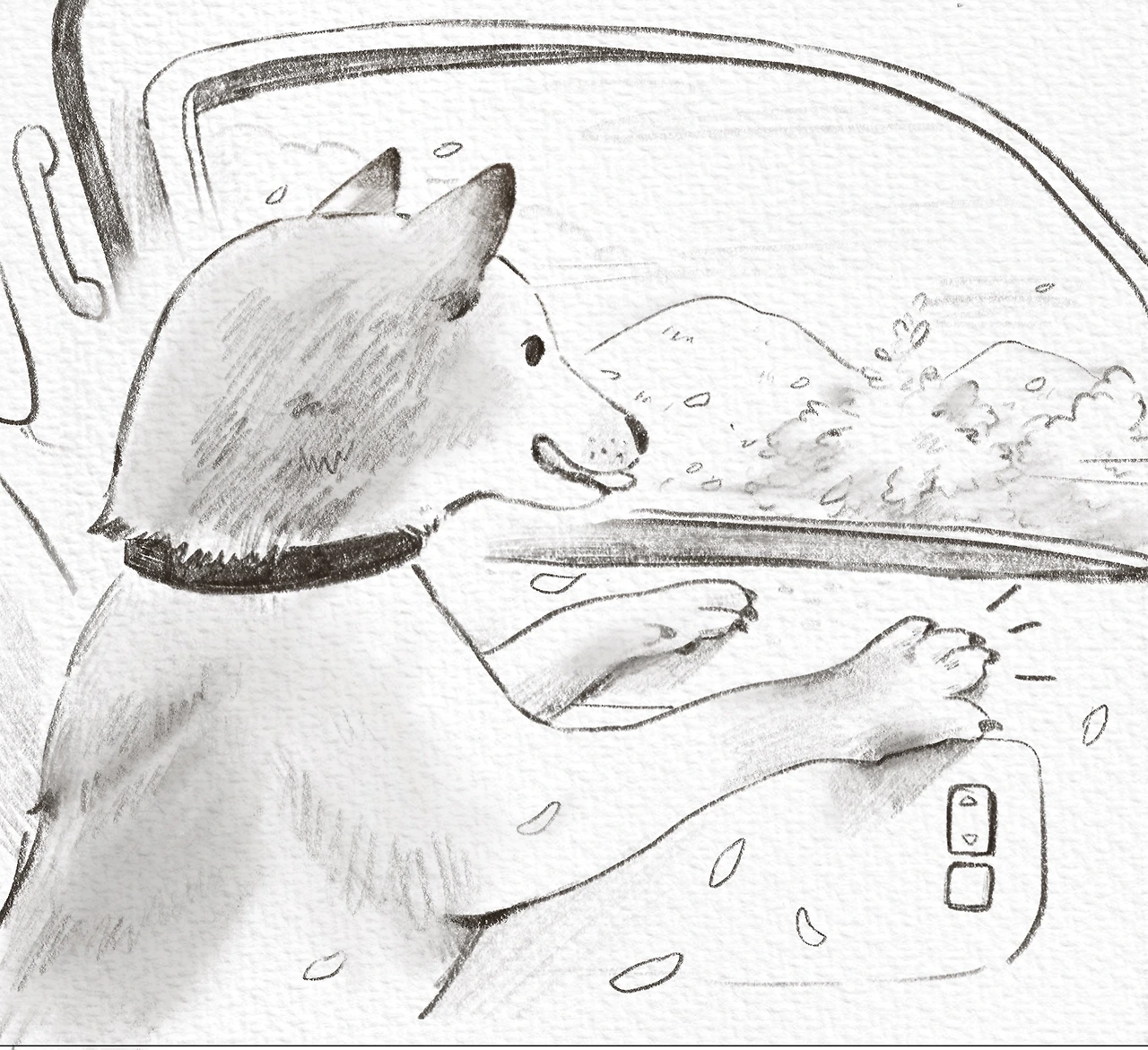 창문을 열어주고 느리게 달리면 창에 몸을 바싹 대고 바람 냄새를 맡습니다.