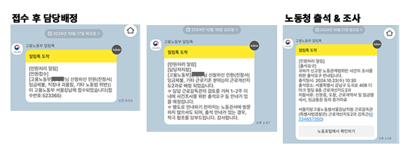 모든 진행과정은 카카오톡으로 안내된다. 접수한 다음날 근로감독관이 배정됐고 일주일 내로 노동청 출석&조사 일정이 잡혔다. 출석일 전날 근로감독관이 전화를 해서 출석여부와 사건개요를 확인했다. 그리고 사업주가 연락두절이라 '불명'으로 끝날 수 있으니 검찰고발도 진행하라는 조언을 들었다.