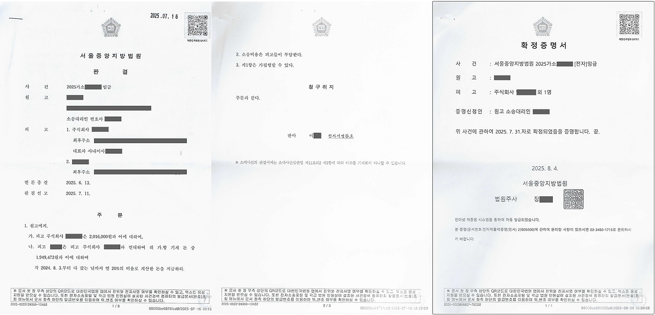 2025년 8월 1일은 지난 3월에 제기한 임금체불에 대한 민사소송 판결확정일이다. 예상했던 그대로 '전부승소'다. 그도 그럴 것이 상대방의 불법행위가 너무나도 명백했기 때문이다.