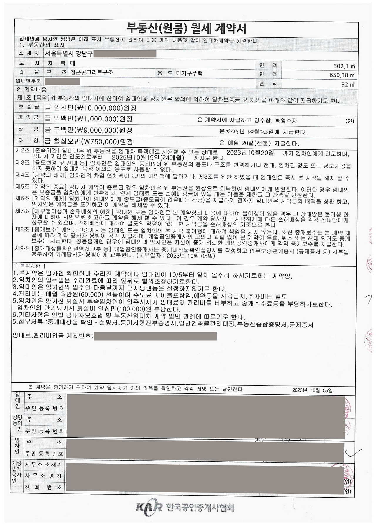 부동산도 인연이라 딱 맞는 조건의 집을 발견하면 뒤도 안보고 잡는게 좋다고 생각한다. 다음날 부동산에서 집주인을 만났다. 만일 대리인이 나온다면 위임장과 인감증명을 반드시 확인해야 한다. 나는 집주인과 직접 만나 서로 신분증 확인 후 계약서를 작성했다. 리모델링을 할 예정이라, 그 후로 입주일을 조정하고 특약사항을 확인한 후에 계약서에 서명했다.