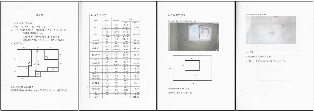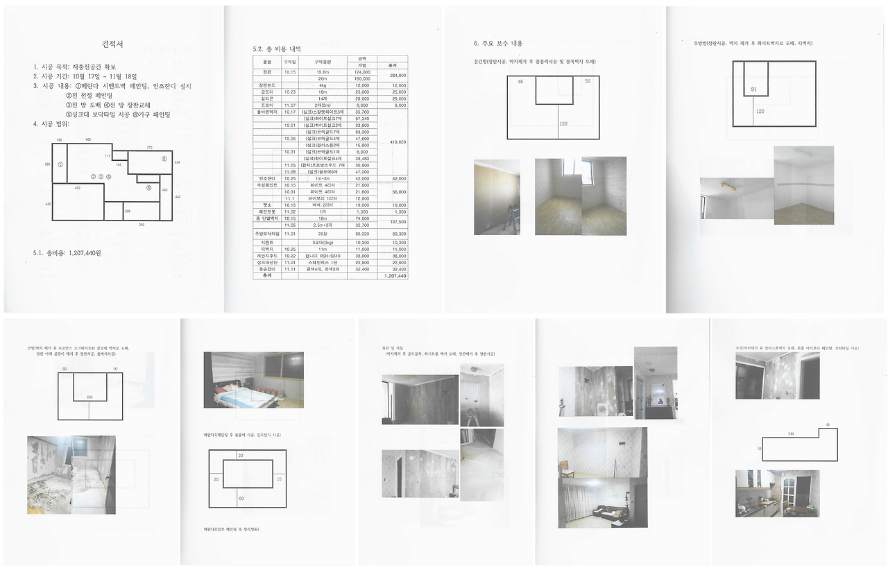 월세방을 구하는데도 전세처럼 보증금이 필요하다. 물론 보증금이 없는 집도 있는데 그러면 월세액이 더 비싸다. 기록을 정리하다 집을 고치고 부모에게 전달한 보고서 2개를 발견했다. 생각해보니 나의 월세 보증금은 두 개의 보고서에서 나왔다. 정확히는 2018년도에 집 2채를 고치고 부모에게 1700만원을 받았다.