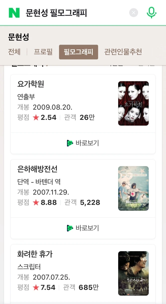 감독의 필모그래피를 찾아보았다. 7개의 작품은 다 모르는 작품인데도 평점이 8점대로 높은 것도 있었다. 물론, 내가 실망했다고 해서 남들도 다 그럴거라고는 생각지 않는다.