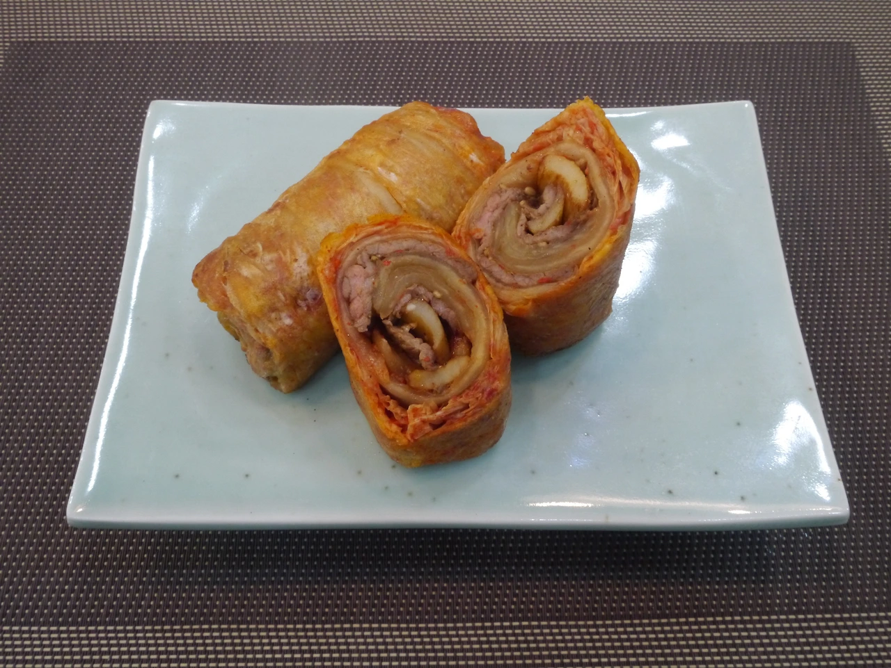 3. 속을 털어낸 김치에 익힌 쇠고기와 마늘을 올려 돌돌 말아준다.