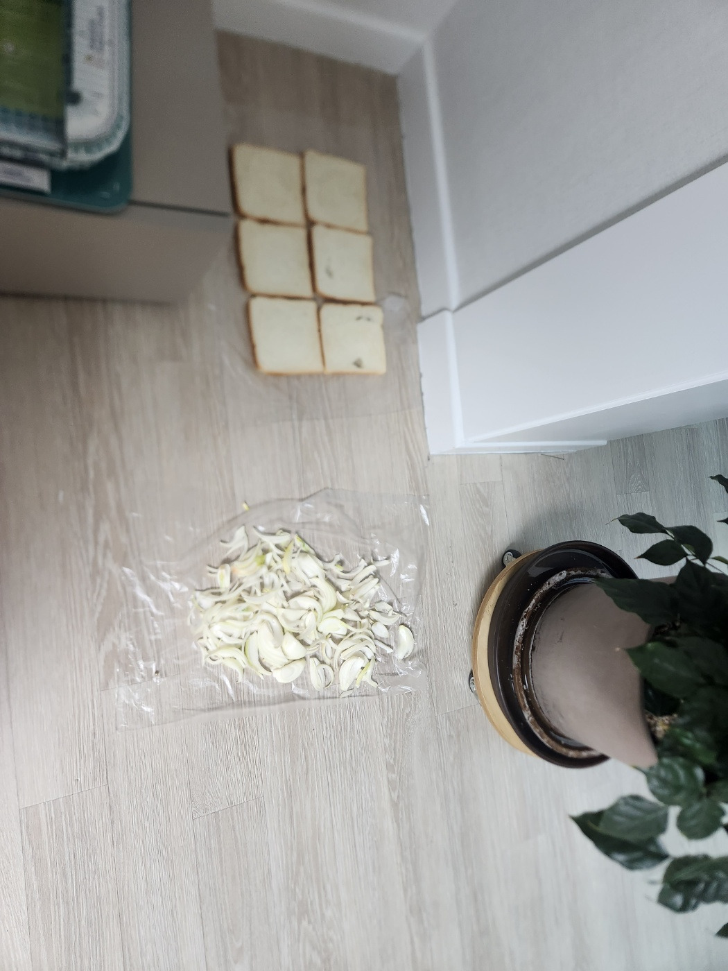 나는 집주인이 입주 3일 전에 초저가 페인트로 칠한 몰딩에 당첨이 됐고 페인트 냄새로 머리가 너무 아파왔다. 혹시 나처럼 이미 칠해져 버린 페인트 냄새 때문에 힘들다면 양파, 식빵, 숯 등으로 탈취에 노력을 기울여도 좋을 것 같다. 나의 기준 가장 효과가 좋았던 것은 식빵이었다. 저렴한 식빵을 잔뜩 사서 집안 곳곳에 잘 펼쳐 놓으니 식빵 표면이 마를 때쯤엔 냄새가 제법 사라졌다. 하루 이틀 간격으로 빵을 세 번 갈아주고 나니 냄새가 현저히 줄어드는 것을 느낄 수 있었다.