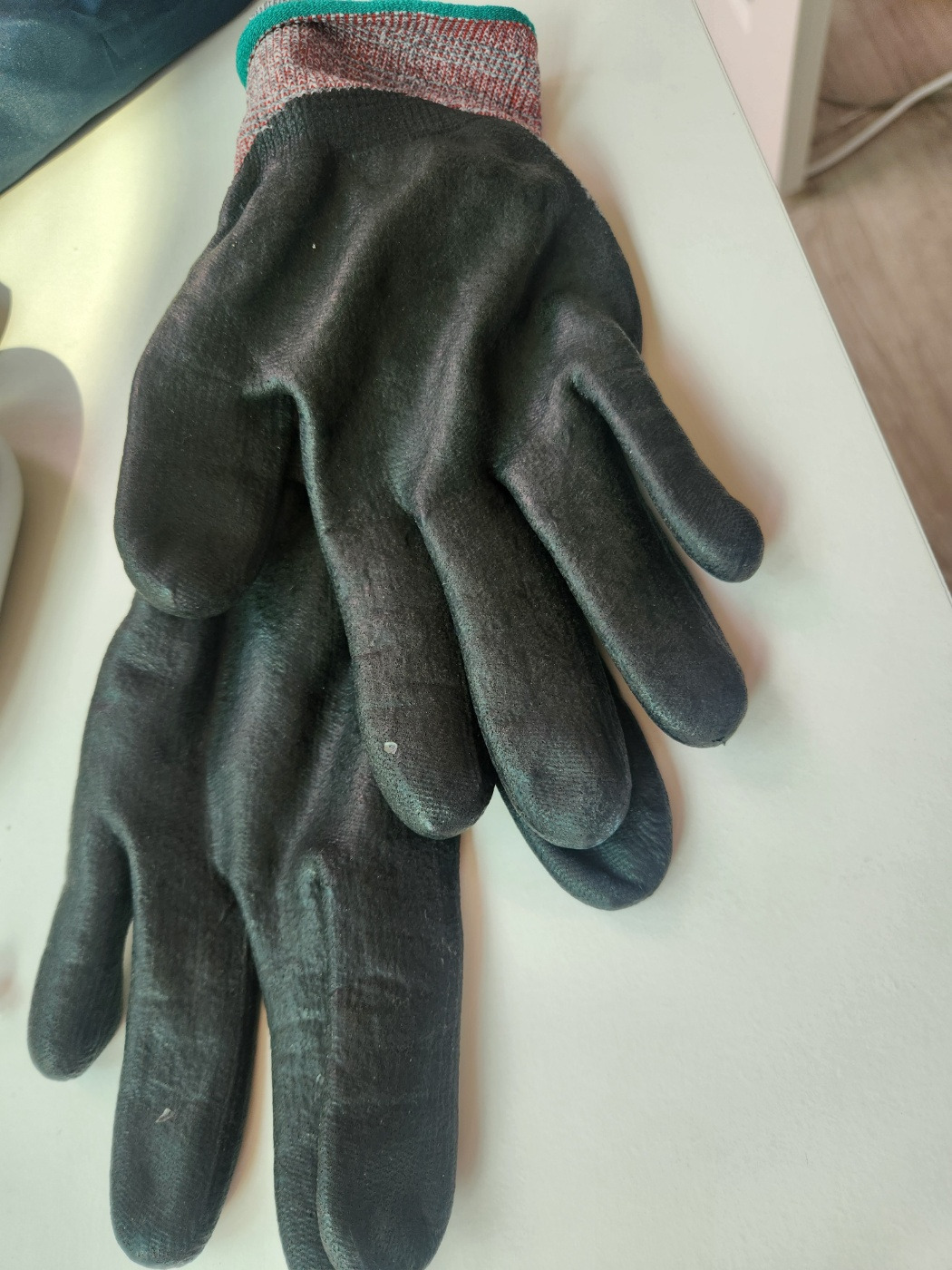 장갑을 나누어주는 현장도 있었지만 대부분의 현장은 자기의 장갑을 가져가야 하는 시스템이었다. 현장에서 나누어주는 장갑들은 대부분 목장갑이었는데 목장갑은 손가락 부분을 잘라서 PDA 등을 사용하기 편하게 조절할 수 있다는 장점이 있었지만 너무 춥거나 더운 현장에서는 보온이나 방수가 안 돼 불편한 부분이 있었다. 그때 챙겨간 코팅장갑은 꽤나 든든한 노동 필수품이었다. 물건을 잡는 그립감도 좋고, 테이프를 붙여야 할 때 장갑에 들러붙는 일이 없어 매우 편리했다. 하지만 코팅장갑을 고를 때도 꼭 살펴야 할 부분이 있었다. 나는 손목 부분에 색이 크리스마스 컬러 같다는 지극히 철이 없는 기준을 가지고 골랐는데, 손목 부분이 거 끌거려 나중에는 빨갛게 부어오르기도 했다. 손을 자주 움직이는 일이 많기에 손 목 부분이 조금 부드러운 것을 고르는 것이 업무 효율을 높일 수 있으니 손목 부분을 피부에 살짝 문질러보고 결정할 것을 추천한다.