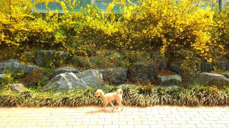 유자의 5년 생애를 통틀어 가장 자극적인 봄날이 지나가고 있다. 매일 휘몰아치는 변화와 자극을 맞이하는 유자의 자세는, 답지않게 용감하고 침착하다. 여전히 짖기도 하고 물가에서 트러블도 있었지만 이 정도면 의연하게 적응을 마쳤다고 생각한다. 거처를 옮기고 매일 새로운 길을 걷는 봄. 그런 봄이라면 사람에게도 쉬운 계절이 아닐텐데. 유자 표정에 그늘이라고는 손톱만큼도 보이지 않아서 고맙다. 개도 과거를 추억할 수 있는지는 잘 모르겠지만, 언젠가 유자가 '다섯 살 때 봄은 힘들었지만 참 좋았지'라고 지금을 곱씹어준다면 좋겠다.