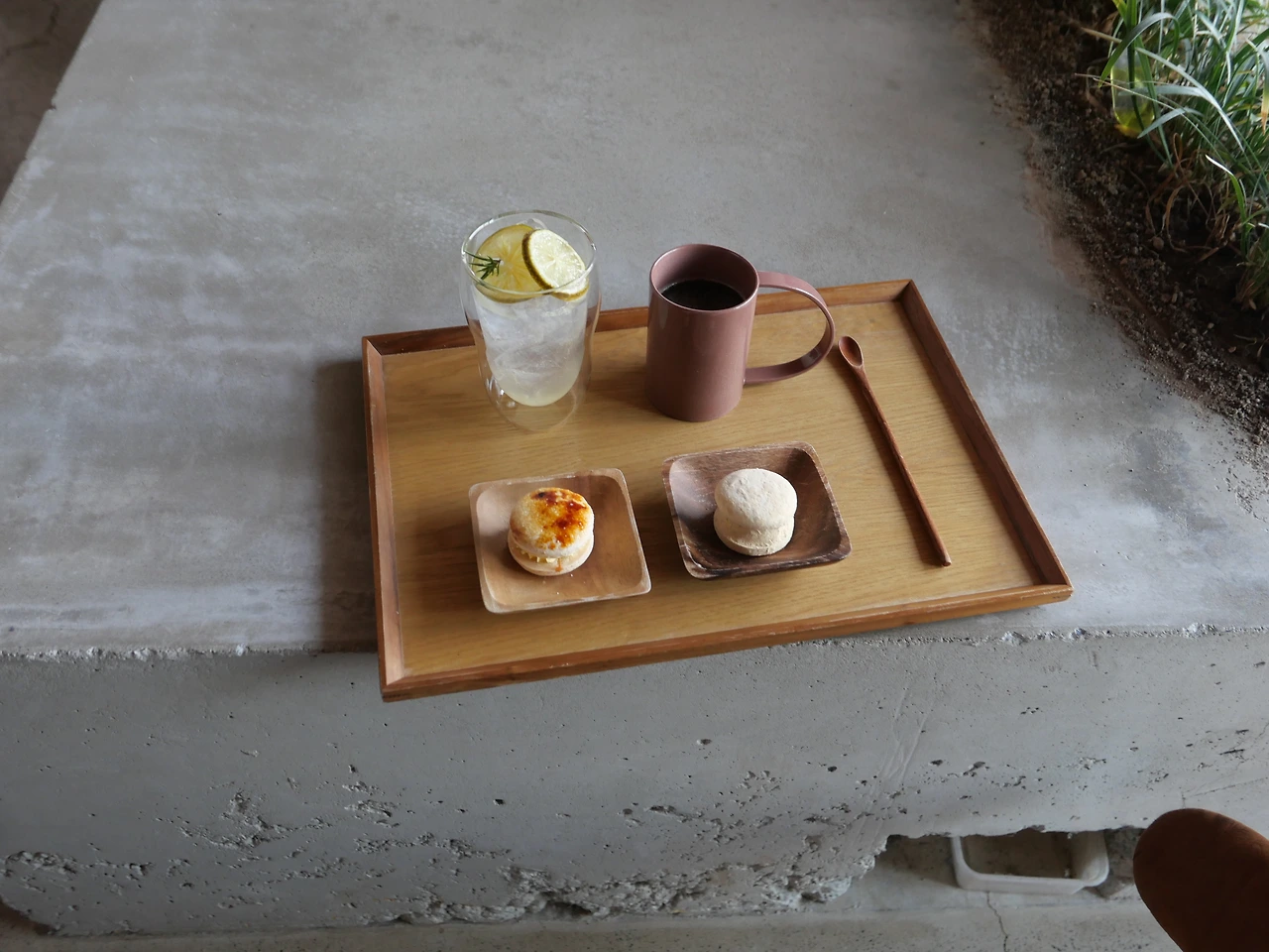 지평집의 로비도 굉장히 감각 있었는데, 여기서 체크인을 하며 맛있는 음료와 디저트를 먹을 수 있었다.