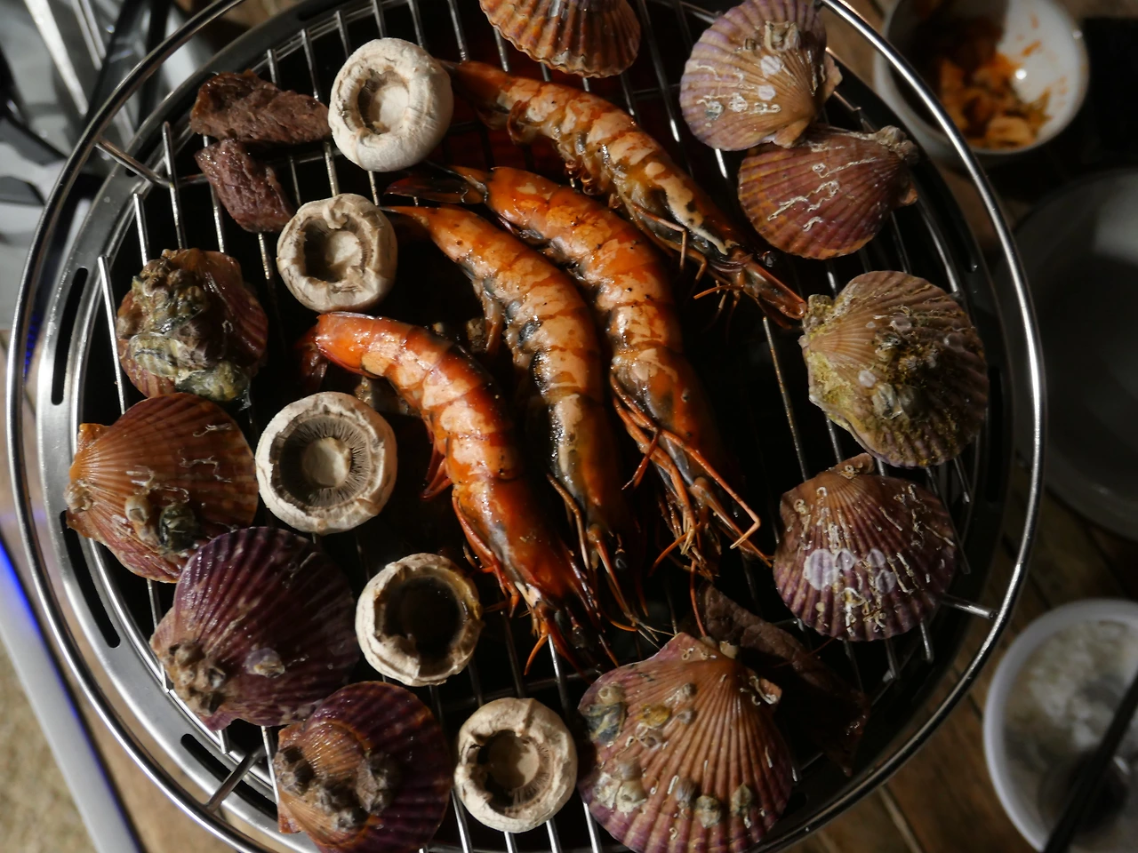 지평집의 방은 이름 그대로 높지 않은 침대부터 시작해서 하나의 브랜드같이 일관적인 분위기와 감각적인 공간을 이루고 있었다. 약간의 낮잠을 청한 뒤 배가 고파질 때쯤 미리 예약해둔 바베큐 용 화로를 받아 장 봐둔 여러 음식들을 구워 먹었다.