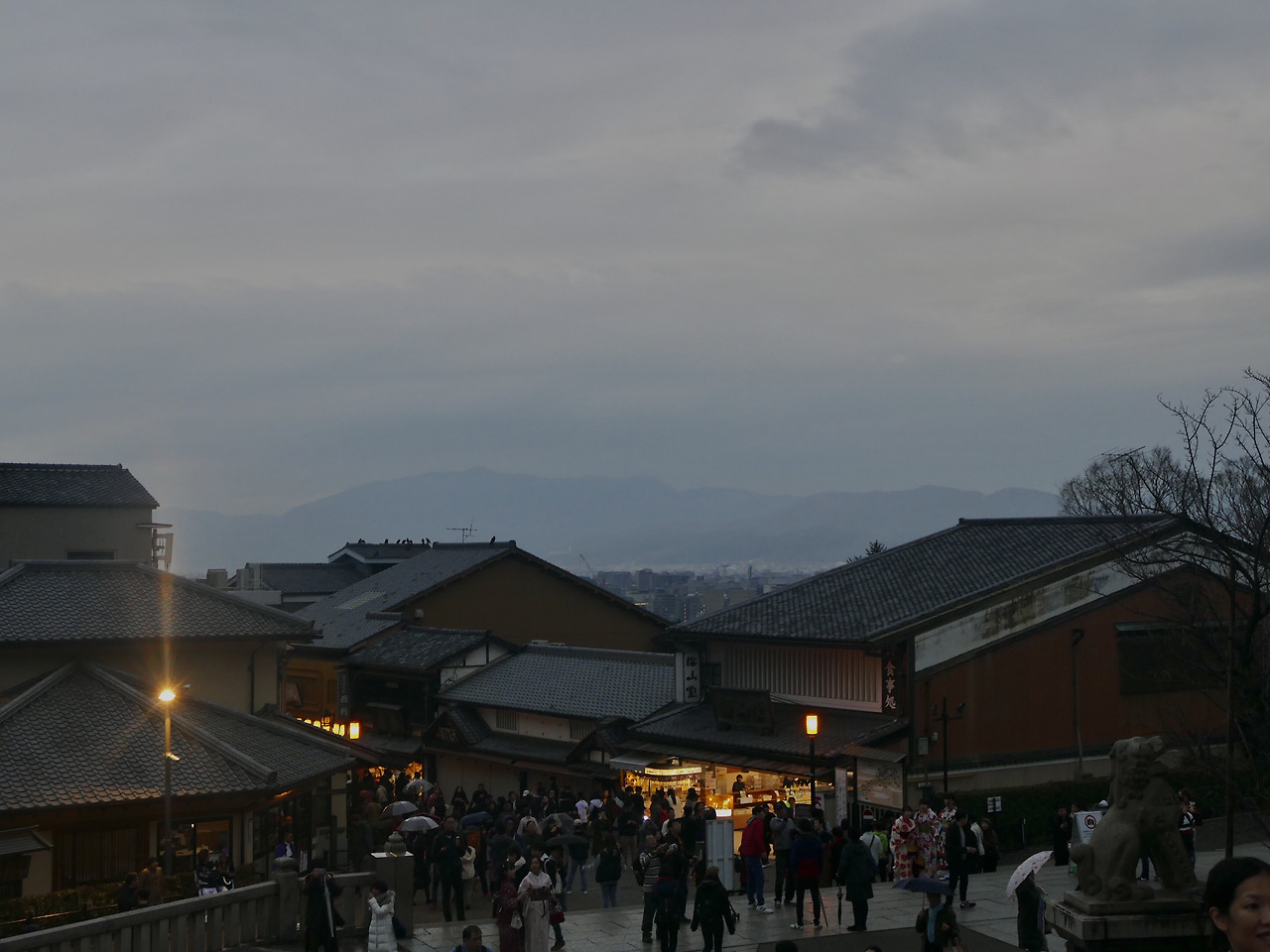 Comment: 해가 지기 전 둘째 날의 마지막 목적지로 향한 곳이다. 비도 조금씩 오고 사람이 굉장히 많았던 곳이다. 공사(2020년 종료 예정)만 아니었다면 좋았을 장소. 청수사는 교토 여행을 상징하는 어트랙션 중 하나이고, 실제로 봄과 가을의 풍경은 장관이라고 한다. 하지만 필자는 겨울과 밤, 그리고 흐린 날씨에 방문하는 바람에 청수사의 본모습을 보지 못했던 것 같다. 하지만 청수사까지 가는 길과 주변 상점들, 그리고 흐린 날씨에서 바라보는 교토의 풍경은 운치 있었고 색다른 느낌이었다.