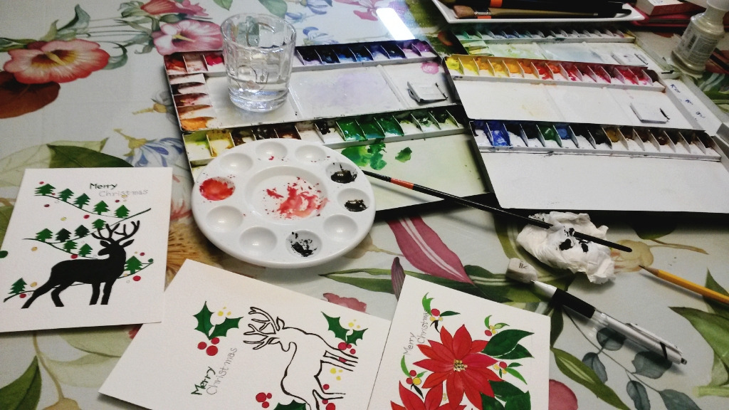 큰 아이는 포인세티아를 그려달라고 했고, 둘째는 뭐든 상관 없다고 했고, 남편은 ..... 손수 카드를 만들어 누군가에게 보낸 기억이 까마득하다. 퇴직을 했고 겨울이라 마음의 여유가 생겨 나는 무엇이든 할 수 있다. 아이들은 연말이라 더 바쁜듯 하다. 내일 서울에 가면 책상에 올려두라고 만든 카드는액자에 다 넣었다. 숙녀들!