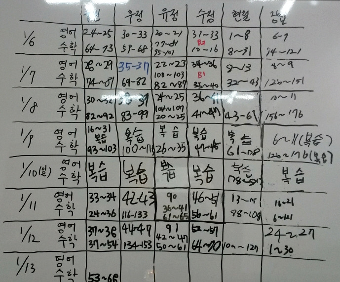 칠판에 써 놓은 여섯 아이의 겨울방학