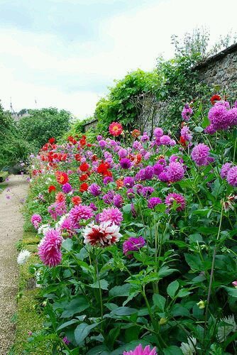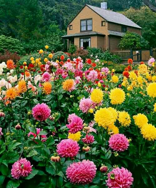 * 키 작은 분홍, 오렌지색 달리아와 중간키의