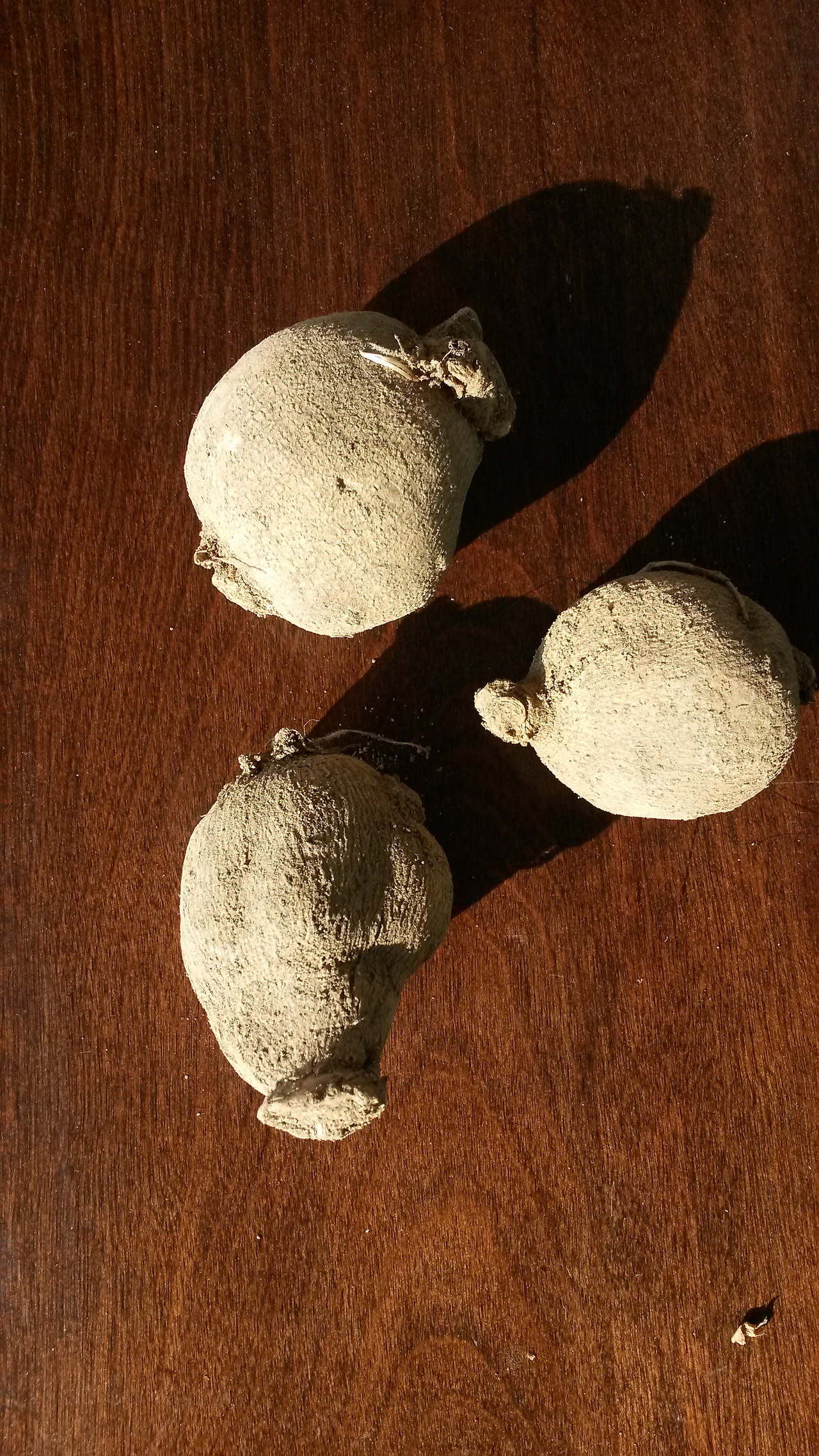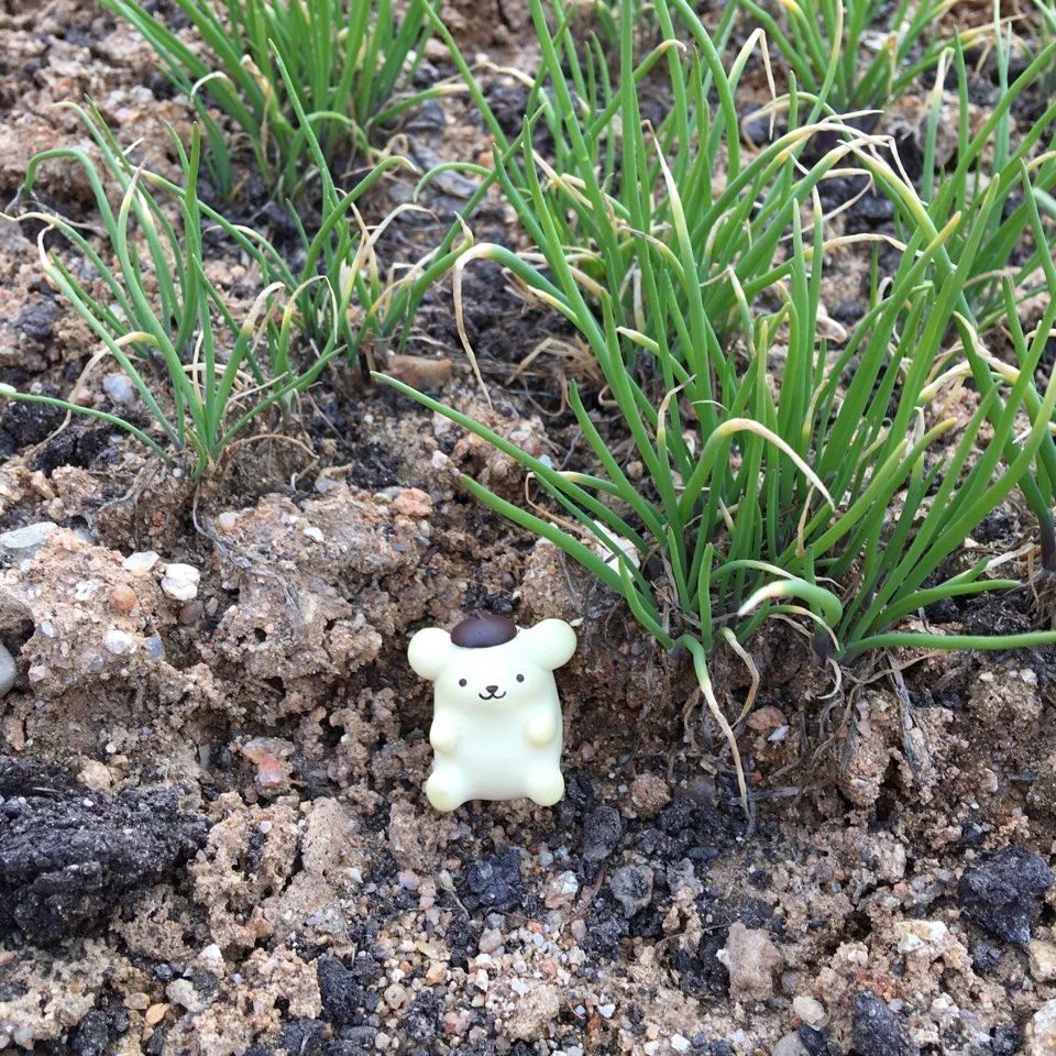 가 꽃씨와 구근 세 개가 든 봉지를 대문에 묶어두고