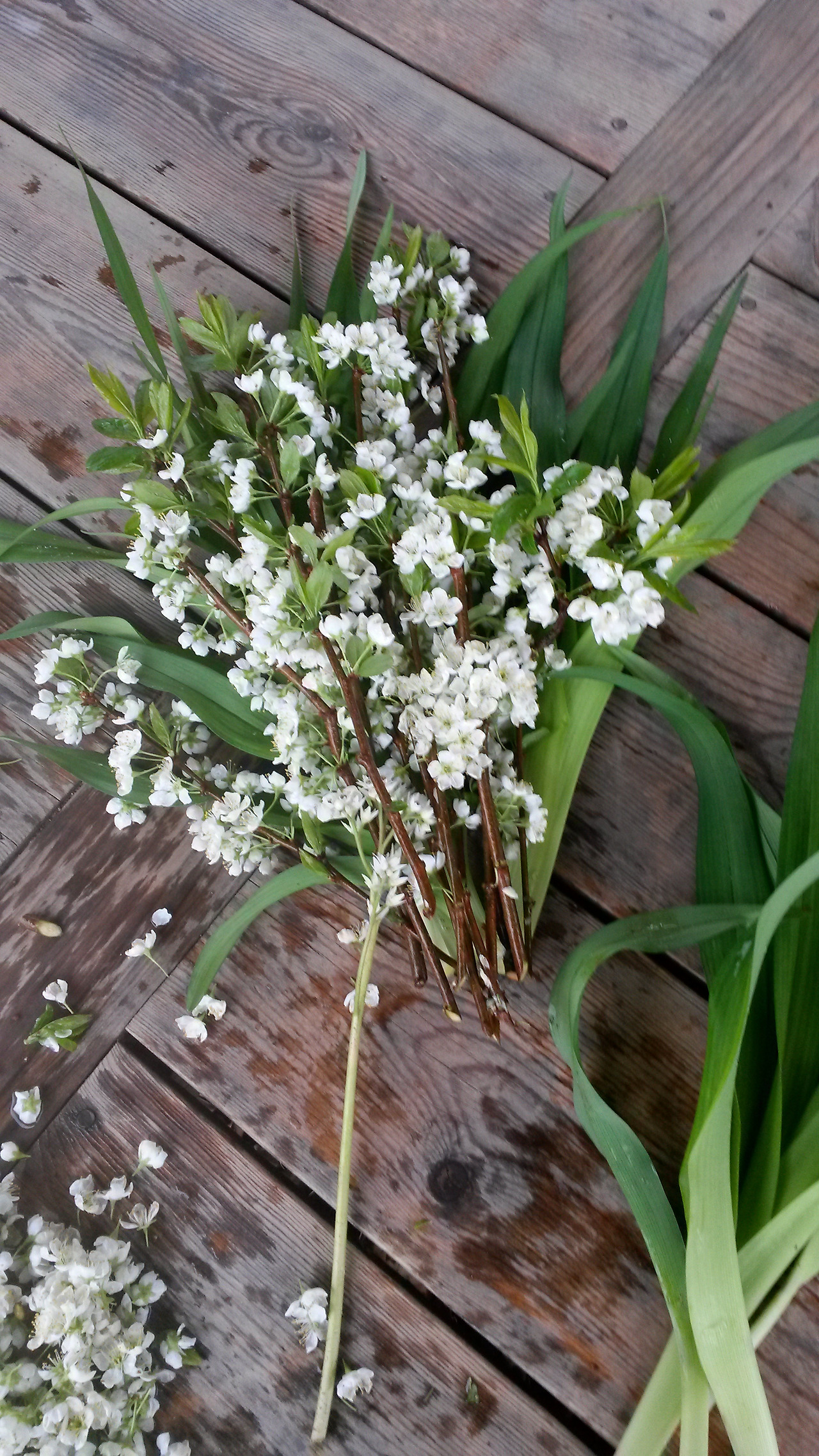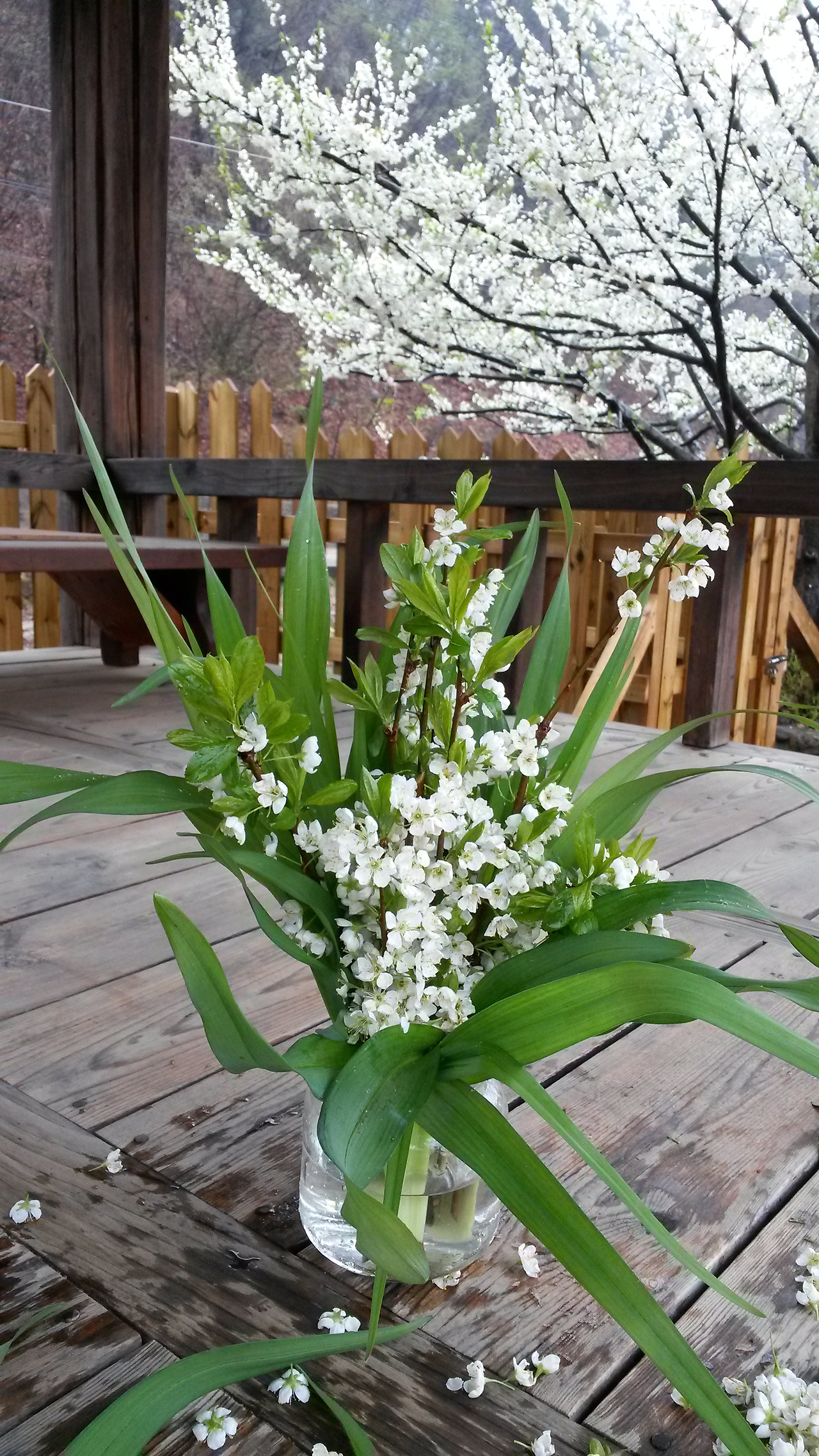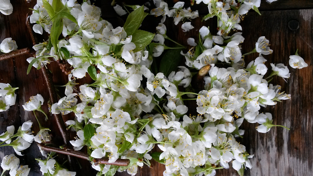 작년! 나는 난생처음 자두꽃을 보았는데 너무좋아 앞뒤 가리지 않고 모두 따서 꽃 차를 만들어버렸다. 얼마나 정신 나간 큰 실수였는지! 꽃을 다 따버렸으니 열매가 열릴 수 없었던 거다. 올해는 바라보기만 하리라 마음먹었다. 꽃은 듬성듬성 피어났던 작년과는 비교가 안될 정도로 엄청나게 매달려 있다. 가지를 툭툭잘라서 모아보니 흰 연두 자두꽃 향기로 숨이 막힐 지경이다.