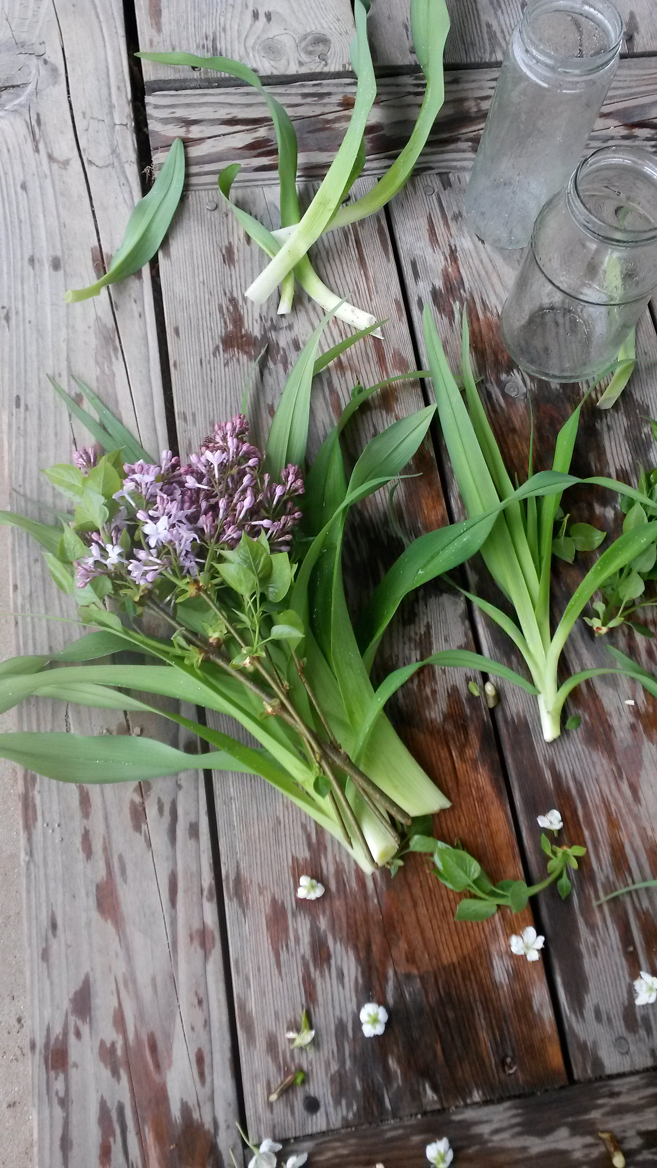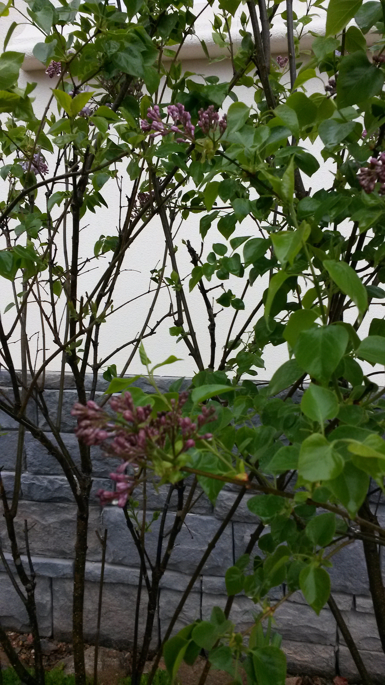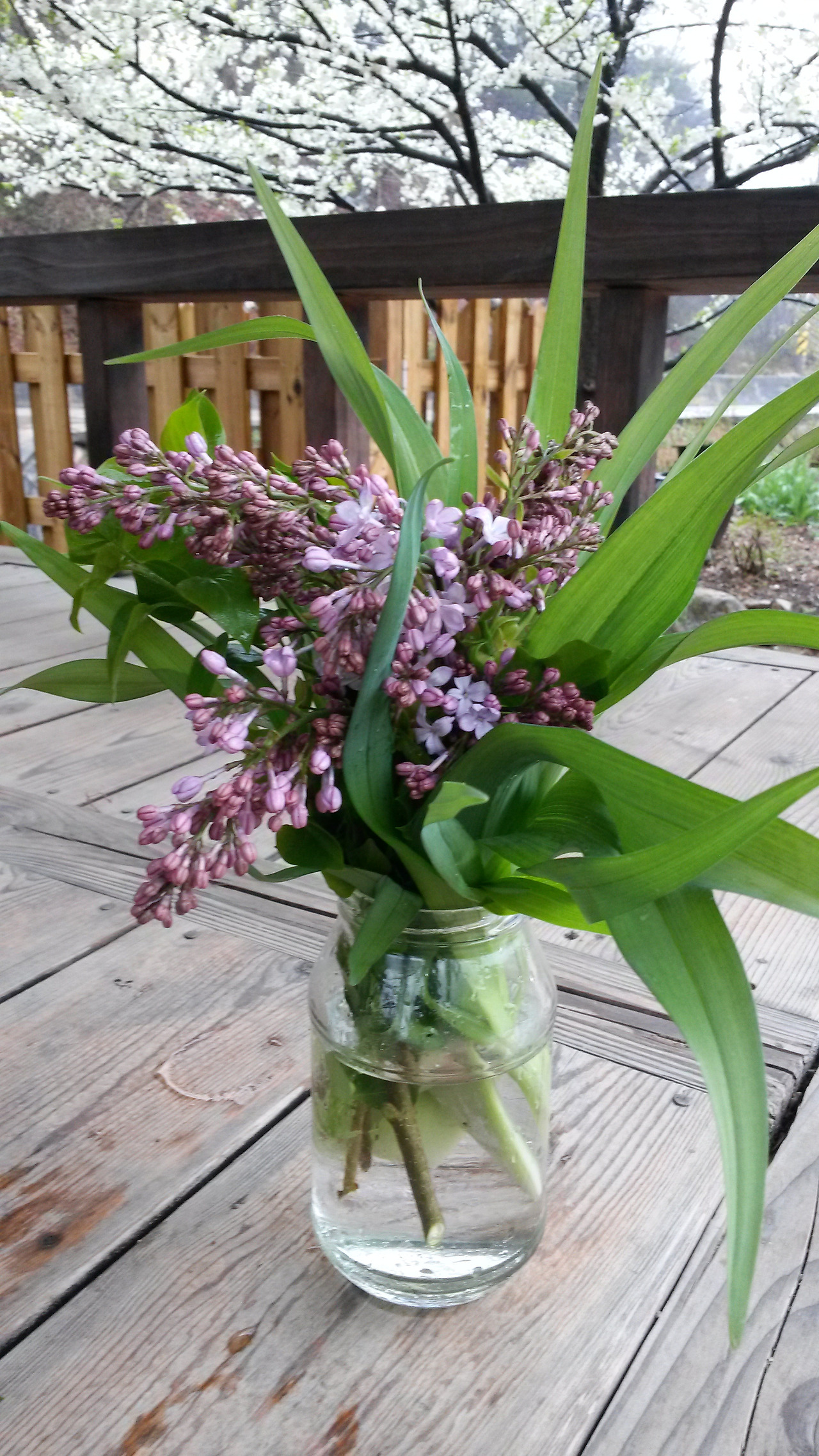 폈다. 안방 창문 아래 피어난 라일락을 자르니달콤한 향기가 감겨든다. 분홍 보라 라일락의배경으로 초록색 원추리 잎을 둘렀다.