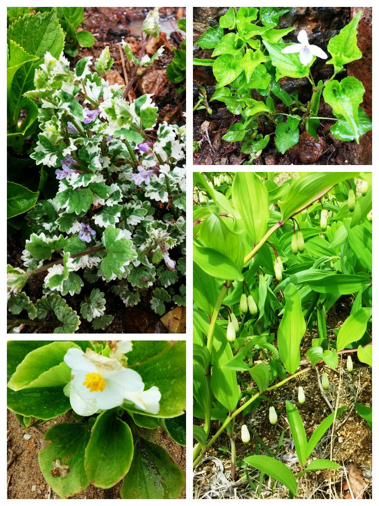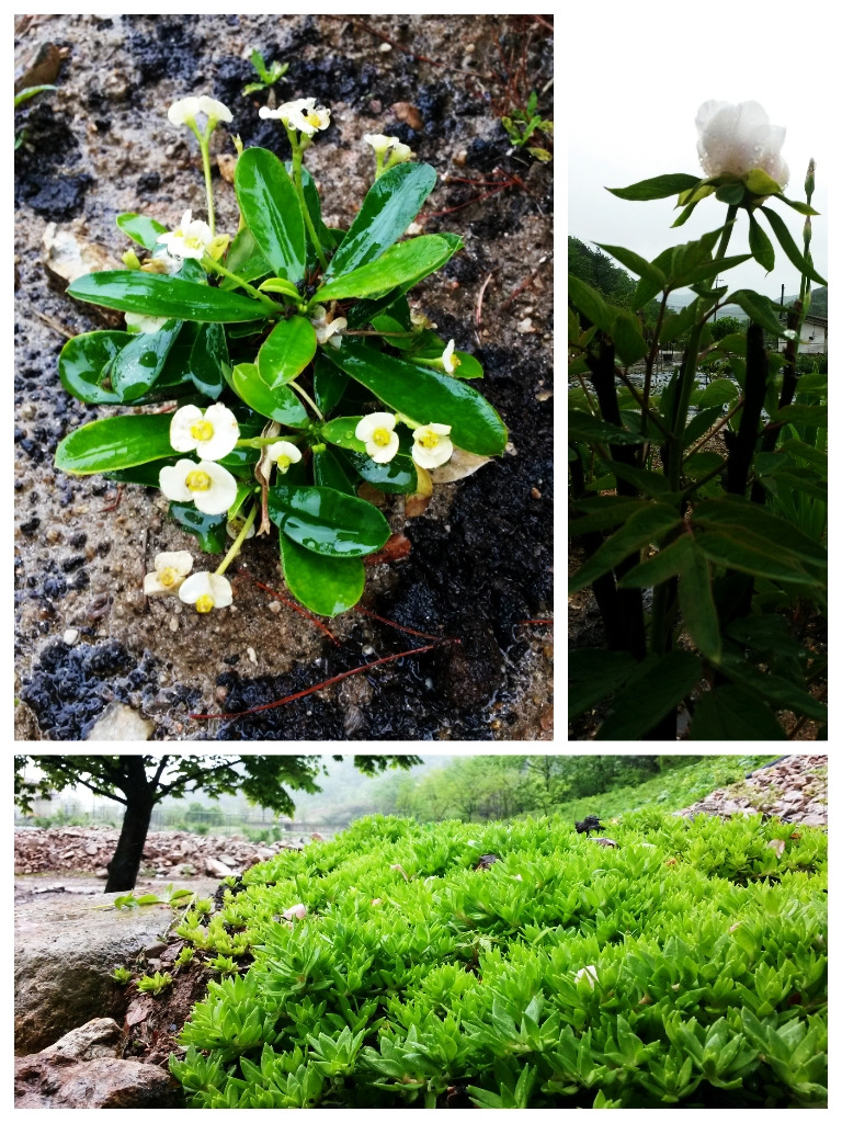 목단과 철쭉 기린초와 베고니아 몇 개는 흰색